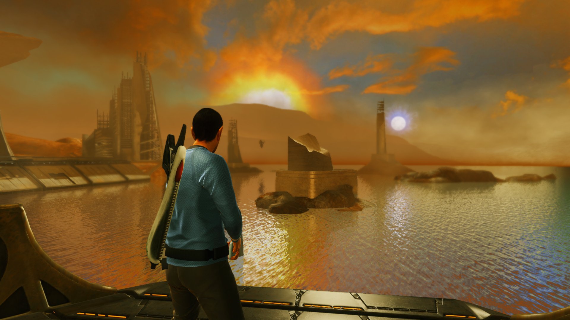 Breve post per mostrarvi nuove immagini di Star Trek The Game, action game basato sul film del 2009 di J.J. Abrams in fase di sviluppo da Digital Extremes per Namco Bandai che debutterà su pc, Xbox 360 e PlayStation 3 il prossimo 26 aprile. Sono una dozzina tra scatti che immortalano i protagonisti (Kirk, Spock), alcuni mostri in azione, la mitica Enterprise ed concept art .