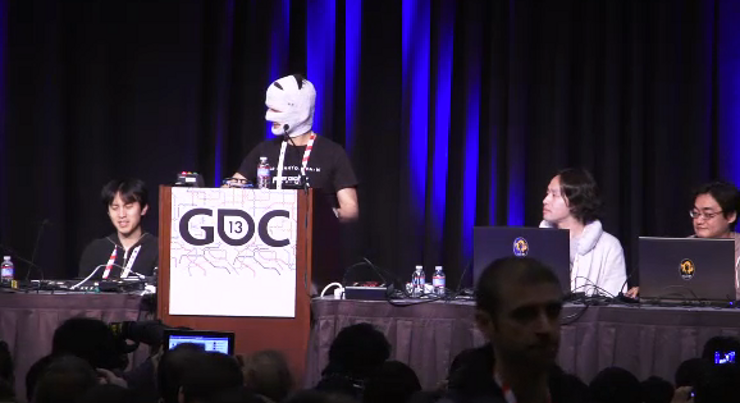 La foto che precede questo testo eloquente: Hideo Kojima si presenta bendato al suo evento nel corso della Game Developers Conference. Quindi, Moby Dick Studios e Joakim Mogren, come moltissimi avevano auspicato fin dall’inizio, erano soltanto nomi e personaggi fittizi. Come far parlare dello stesso gioco due volte…