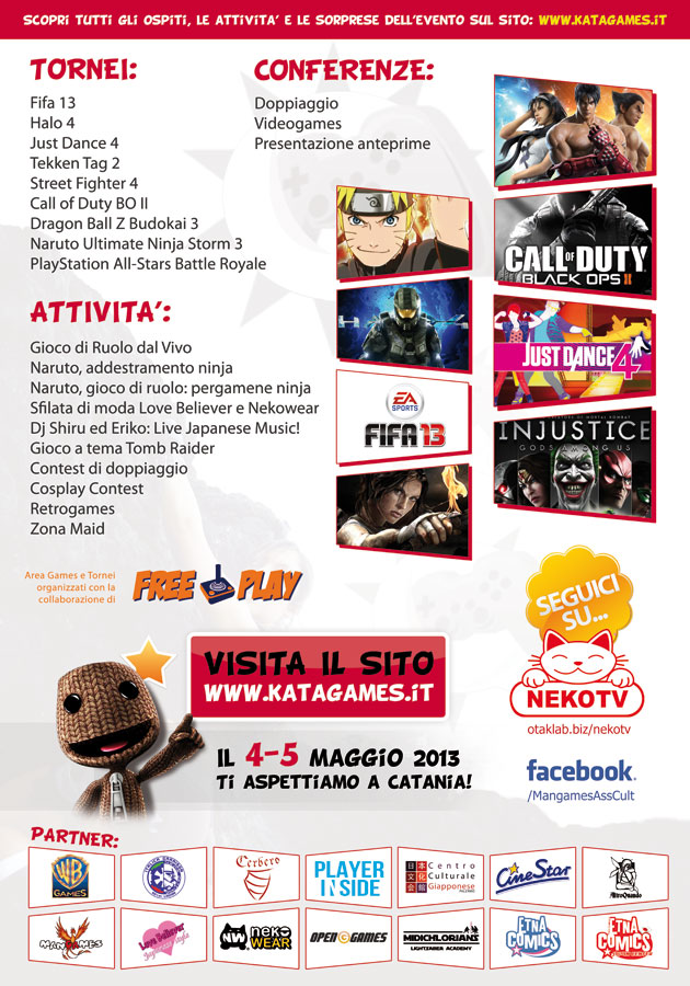 Con il ritorno in grande stile del brand Tomb Raider, anche la figura di Lara Croft si ripropone prepotentemente alla ribalta, grazie al suo fascino e all’immutato carisma; gli ospiti di Katagames avranno il piacere di conoscere personalmente Benedetta Ponticelli, voce italiana della nuova Lara Croft, e di partecipare a giochi a premi sempre incentrati sul nuovo capitolo della storica saga.