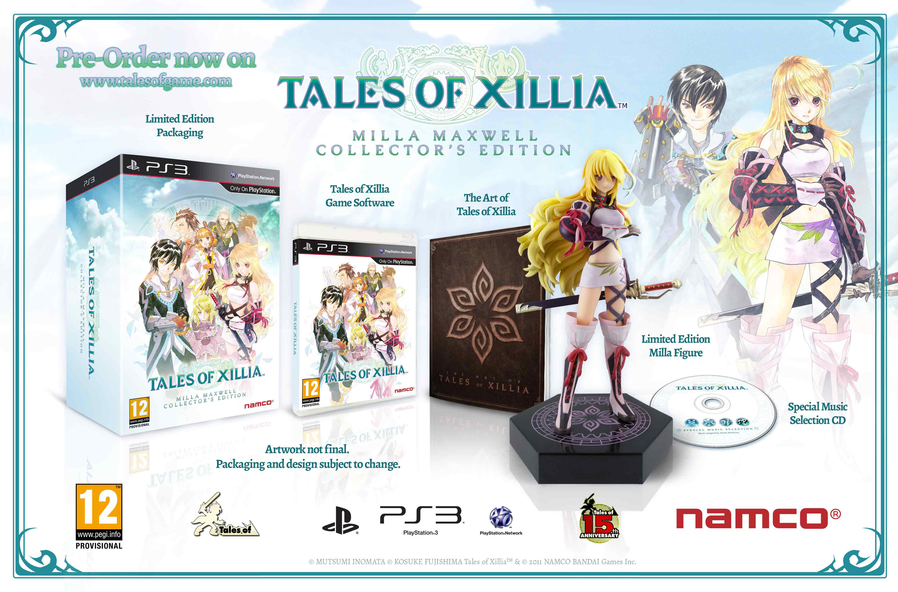 La prima includerà una statua (action figure) di Milla di circa 20,5 cm (base inclusa), un artbook di 50 pagine con copertina rigida ed un cd con la colonna sonora del gioco. Tale versione sarà disponibile in 10.000 copie ed è possibile prenotarla tramite il sito www.talesfogame.com a 99,99 euro con bonus vari legati ai pre-ordini.