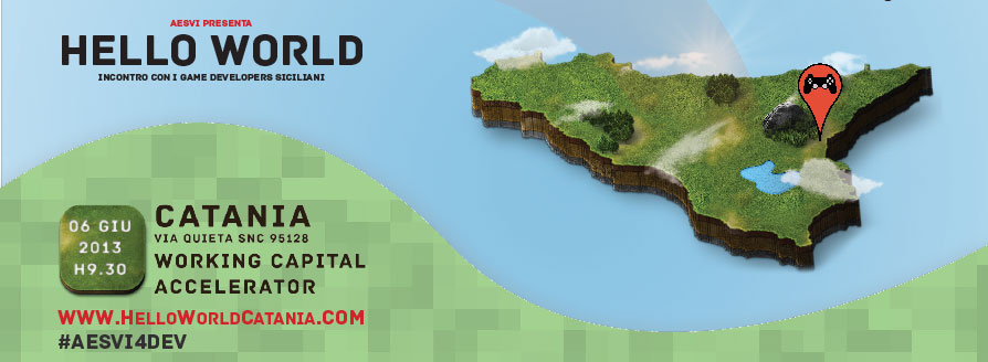 L’iniziativa promossa dall’Associazione Editori Sviluppatori Videogiochi Italiani (AESVI, appunto) si terrà a Catania il prossimo 6 giugno presso il Working Capital Accellerator di via Quieta.