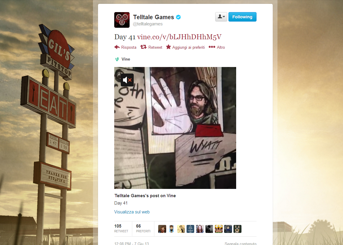 Il post su Twitter di TellTale Games con Wyatt