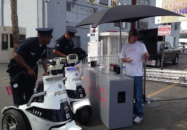 A quanto pare, gli organizzatori della fiera di Los Angeles, ovvero l’ESA (acronimo di Entertainment Software Association) si sarebbero rivolti alla polizia per far chiudere lo stand di Ouya. Il condizionale è d’obbligo (c’è solo il commento della Urhman e manca il commento ESA) anche se gli agenti sono intervenuti realmente come testimonia la foto.