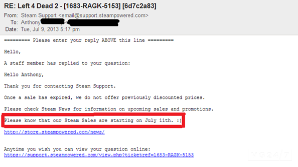 A quanto pare gli sconti partiranno domani (11 luglio). Lo apprendiamo da VG247 che pubblica una mail di Valve ad un utente scrivendo chiaramente che i saldi estivi di Steam partiranno l’11 luglio.