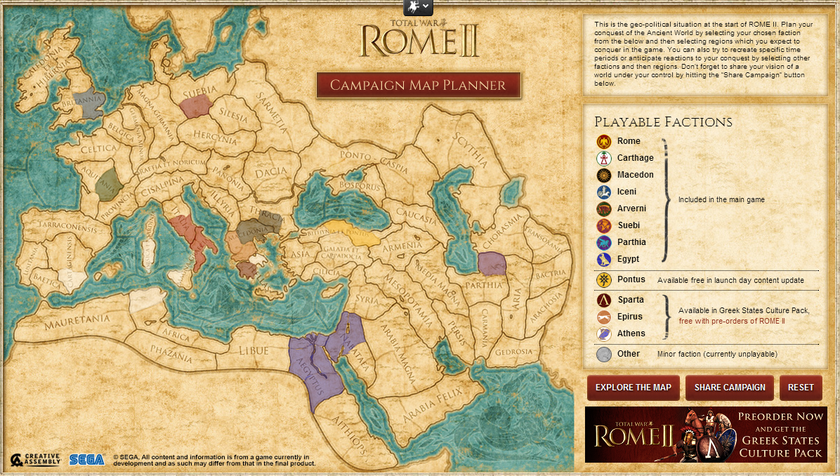 Se state aspettando Total War: Rome II, questo post potrebbe interessarvi. The Creative Assembly, gli sviluppatori del titolo strategico a sfondo storico in arrivo su Pc il prossimo 3 settembre, ha pubblicato la mappa interattiva del gioco.