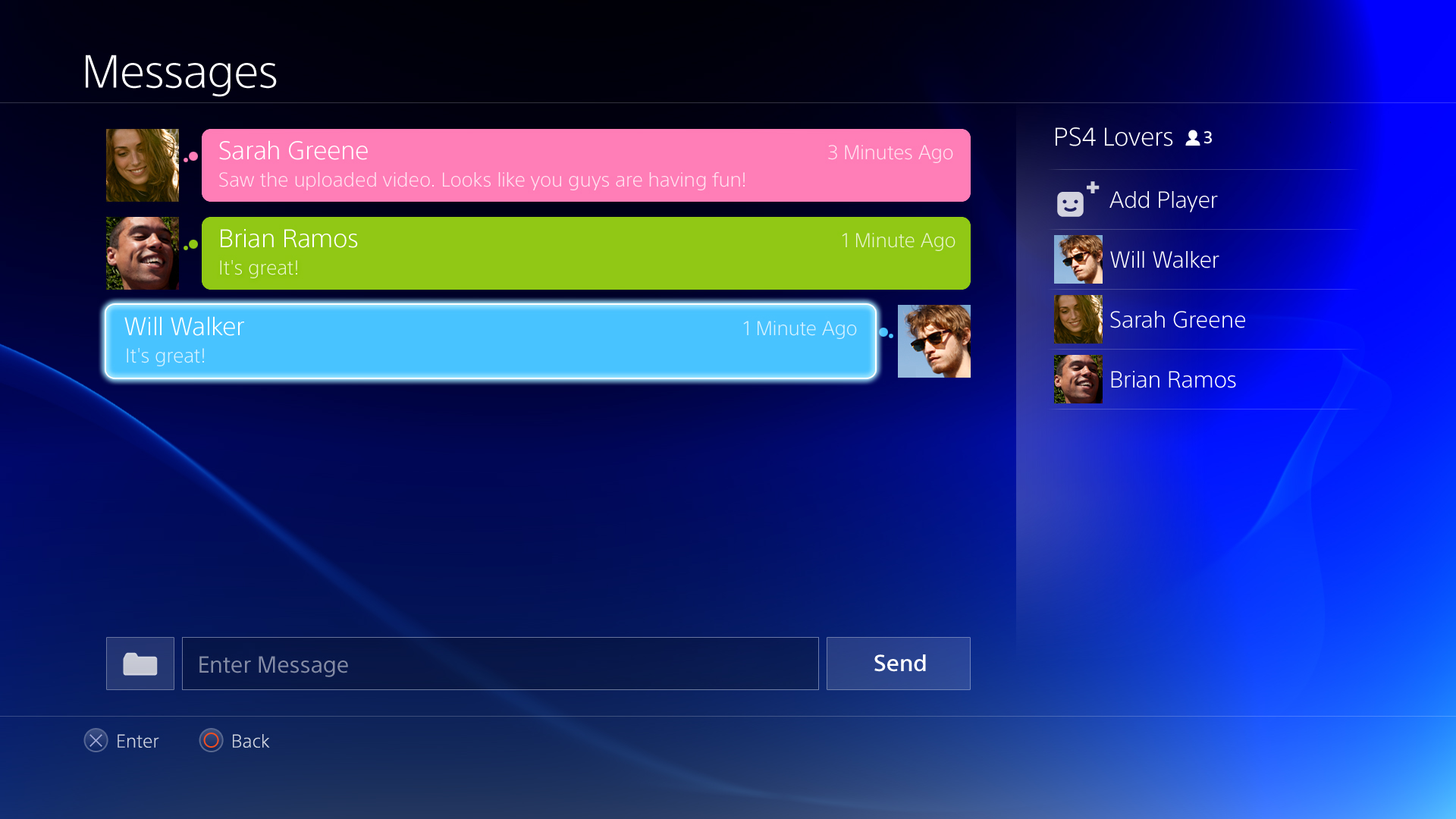 L’interfaccia della PlayStation 4 si mostra in qualche nuovo scatto diffuso da Sony (via AllGamesBeta). Vediamo così il menu principale dove si potrà avere il punto della situazione conslutando le informazioni sui propri giochi e sul proprio account PSN. Vediamo anche come funzionano i messaggi, la cronologia dei titoli giocati dagli amici della lista contatti, la schermata sulle registrazioni video. Tra gli screenshots anche quelli che mostrano l’interfaccia delle applicazioni ufficiali per tablet e smartphone con le quali sarà possibile visualizzare il proprio account PSN ovunque. PlayStation 4 arriverà entro fine anno e comunque in tempo con le festività natalizie.