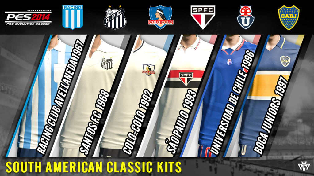 Konami aggiunge nuovi kit sulle divise storiche di alcuni club di caratura internazionale presenti in Pro Evolution Soccer 2014. Da ora, infatti, è possibile scaricare sia dal PlayStation Store (PS3) che da Xbox LIVE MarketPlace (Xbox 360) le terze maglie di Manchester United, Juventus e Inter, nonché le maglie storiche europee per Milan (1899), Benfica (1961), Roma (1982) e Manchester United (1998). Ci sono anche le maglie storiche sudamericane per Racing Club (1967), Santos (1968), Colo Colo (1992), San Paolo (1993), Universidad de Chile (1966) e Boca Juniors (1997).