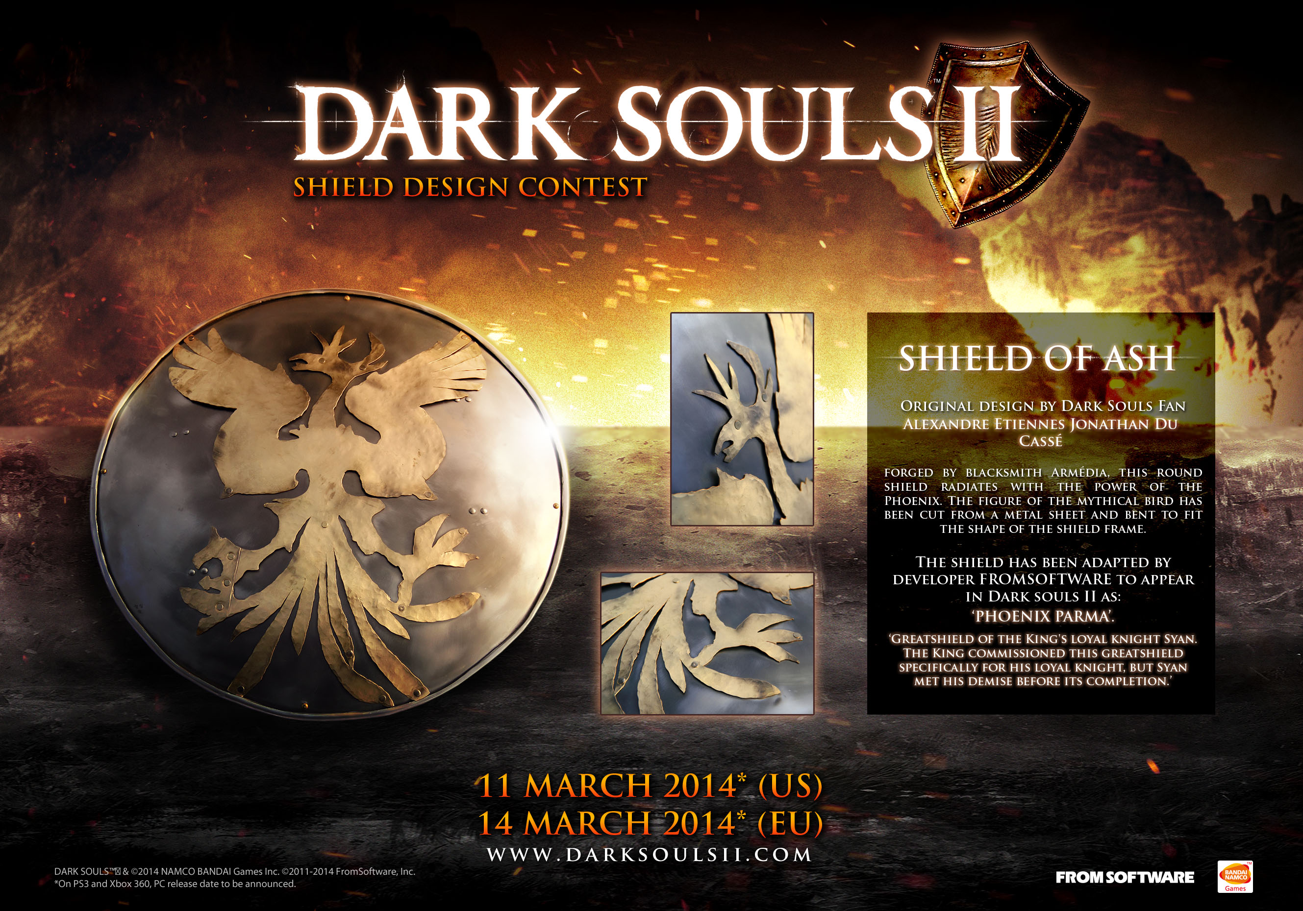 Namco Bandai (o Bandai Namco) ha diffuso ulteriori immagini per rendere noti gli altri due scudi realizzati dagli appassionati che saranno inseriti in Dark Sousl II, action Gdr in arrivo a metà marzo su Pc, Xbox 360 e PlayStation 3. Troviamo lo Schield of Ash ed il Sunlight Warrior Dark. Vediamoli.