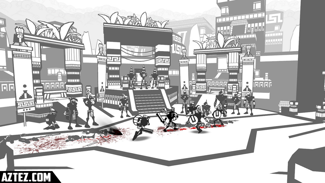 “Brutale, sanguinolento, espressivo, difficile e longevo. In effetti, sono parole forti e forse state pensando che la mia audacia è un tantino esagerata. Tuttavia… fidatevi. Stiamo preparando qualcosa che vi piacerà! Sintetizzando, Aztez è due giochi. Il primo è un picchiaduro a scorrimento orizzontale in tempo reale. Abbiamo integrato la creatività di Bayonetta, la mobilità e il sensazionalismo di Alien Vs Predator di Capcom e la difficoltà e la precisione del classico Devil May Cry. Il secondo gioco dentro Aztez è di gestione strategica. È da lì che proviene il concetto di longevità. Fin dall’inizio avevamo deciso che non sarebbe stato l’ennesimo picchiaduro con narrativa lineare e sequenze platform. Perciò, abbiamo introdotto delle meccaniche diverse, in grado di veicolare il combattimento frenetico: una specie di Risiko casuale e storico!”.
