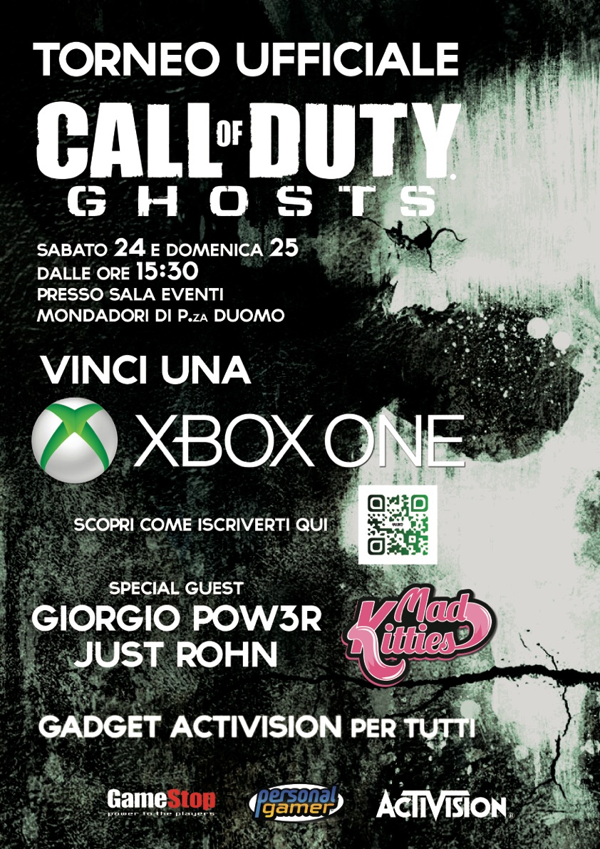 L’evento si terrà sabato 24 e domenica 25 maggio presso la sala eventi del Mondadori Multicenter in piazza Duomo 1, a Milano. Il torneo dedicato allo sparatutto in prima persona di Activision sulla guerra moderna si svolgerà su piattaforma Xbox 360 in modalità 1 vs 1 sulla mappa Strikezone. La prima fase si giocherà sabato 24 maggio a partire dalle 15,30, le finali si giocheranno domenica 25 maggio. In palio per il vincitore una console Xbox One.