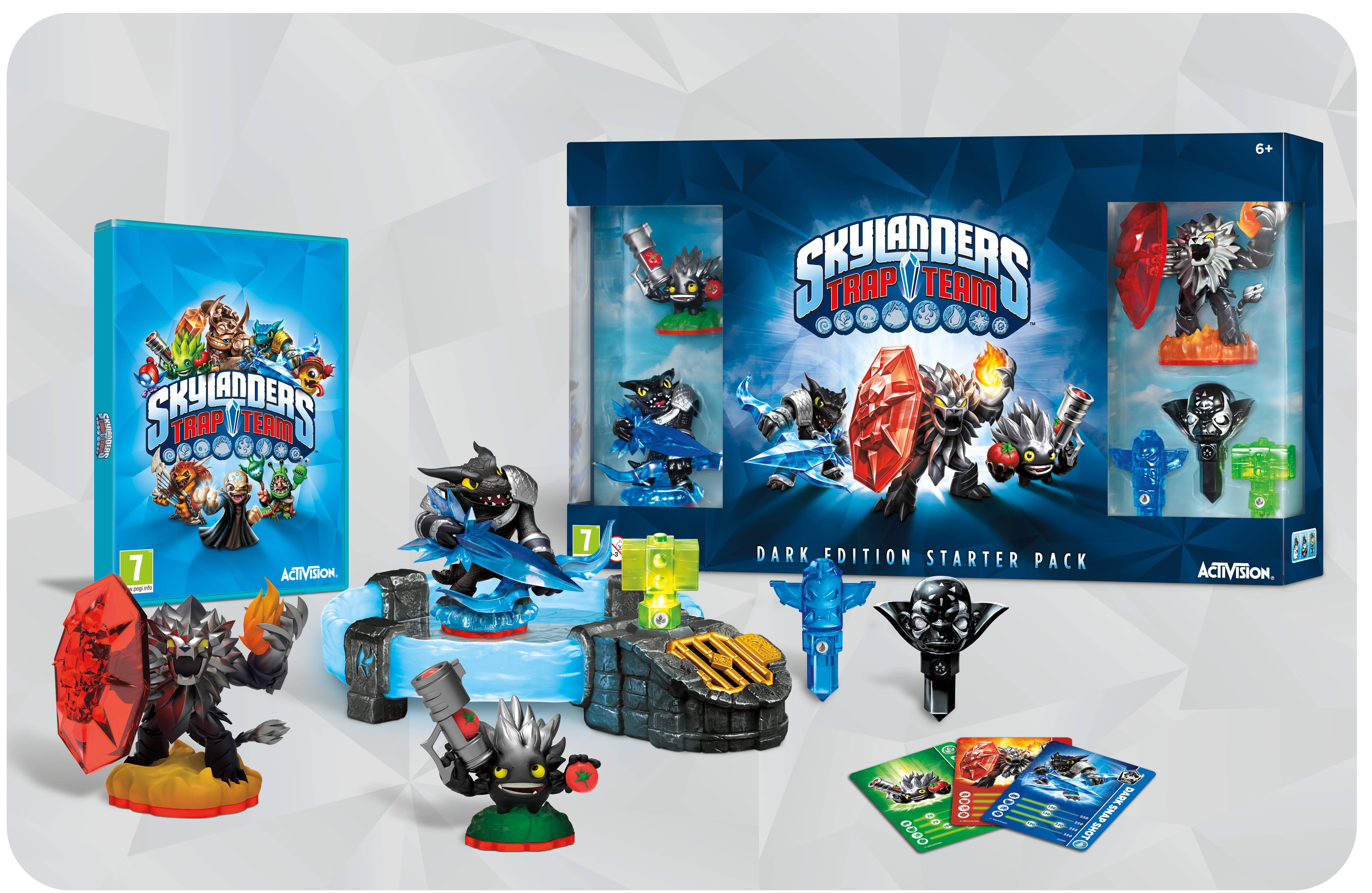 La Dark Edition di Skylanders Trap Team includerà anche due trappole, le varianti esclusive in bianco e nero dei nuovi personaggi Snap Shot, Wildfire e Food Fight; un poster da collezione stampato sui due lati, sticker e trading card. Lo Starter Pack della Dark Edition di Skylanders Trap Team sarà disponibile per Xbox 360, PlayStation 3, PlayStation 4, Nintendo Wii e Nintendo Wii U al prezzo suggerito al pubblico a partire da 89 euro.