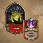 - Il maestro dei miasmi, Loatheb, è il boss finale dell’Ala della Pestilenza. Una volta sconfitto, Loatheb vi garantirà due copie della carta Sputafango.