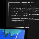 Durante la manifestazione verrà presentato il catalogo di Playing The Game 2014, evento che si è svolto negli spazi di Pirelli HangarBicocca, ed incentrato sul tentativo di sfidare le convenzioni più tipiche del videogioco – i punti da accumulare e i livelli da superare.