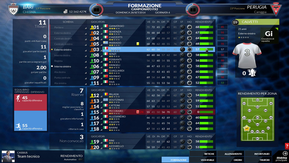 Con una sola occhiata puoi vedere tutti i giocatori trasferibili, le loro caratteristiche tecniche e il loro valore di mercato. Se negozierai bene potrai rafforzare la tua rosa senza dover “rompere il salvadanaio”.