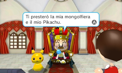 Chiede quindi al Mii di aiutarlo a surclassare il Mago catturando almeno 11 Pokémon diversi. E così il giocatore, accompagnato dal Pikachu del Re, parte da Borgo Regio con una mongolfiera e si appresta a visitare varie zone dove lo aspettano tanti Pokémon giocattolo selvatici.