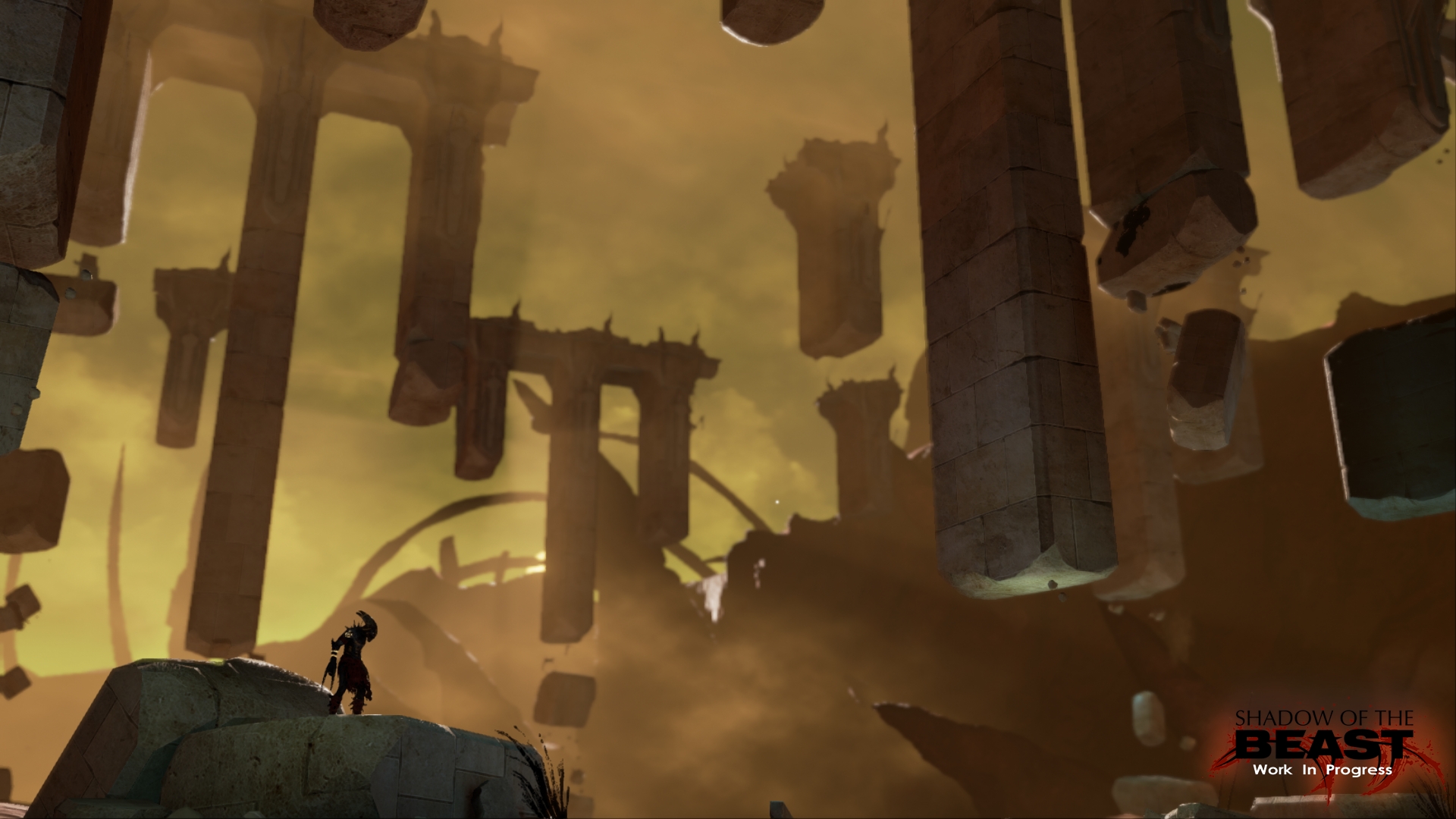 “Quando il nostro team ha iniziato a mettere in piedi i concept della nostra versione di Shadow of the Beast, una cosa ricorreva: volevamo che la nostra versione avesse lo stesso livello di emozione, specialmente visiva, provata davanti alle lande aliene di Karamoon. Gli screenshot che vedete qui sono prese dalla brullo ed arido deserto di Karamoon. L’equilibrio tra brutalità e bellezza è stato un tema ricorrente nella creazione del gioco. Il nostro protagonista, Aarbron, forgiato dal malvagio Maletoth come un’arma vivente, intraprenderà un viaggio selvaggio in questo mondo bellissimo e vibrante. Abbiamo cercato di trovare un modo per bilanciare entrambi gli aspetti per creare un’ambientazione unica ed intrigante”.