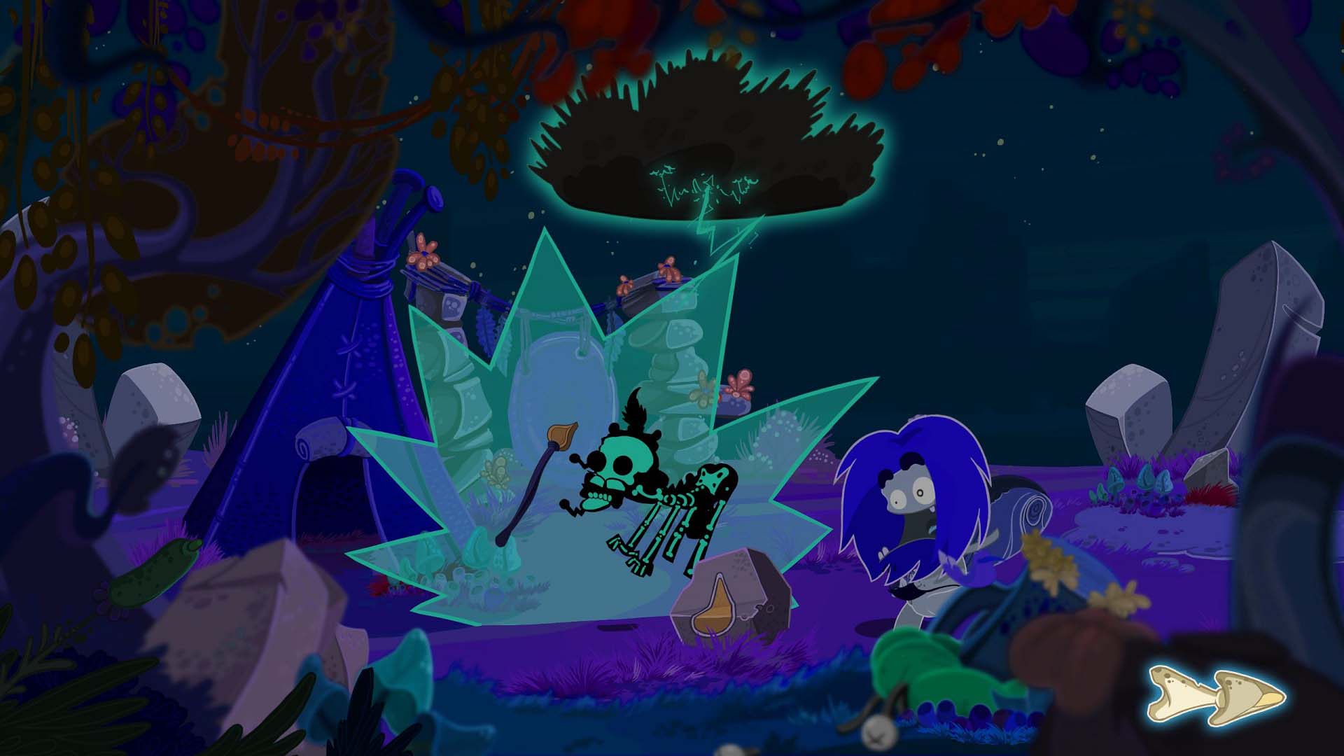 Senza ricorrere a dialoghi o testi, Fire ci getta così nei panni di questo personaggio, intenzionato nell’andare alla ricerca di un nuovo fuoco, girovagando tra dieci location e squarci temporali, ere glaciali, dinosauri e tanto altro. La vena umoristica fa il suo esordio molto presto e accompagna il giocatore durante tutto il tragitto – un paio di ore, non di più per terminarlo – fatto di tavole bidimensionali esplorabili grazie allo scorrimento orrizontale possibile tramite la selezione di apposite frecce piazzate in basso alla schermata di gioco.