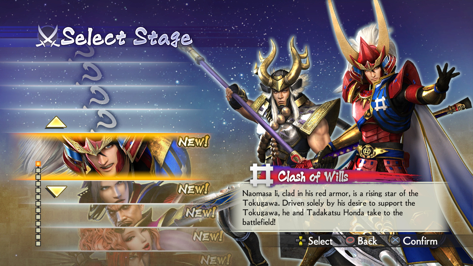 La storia sarà imperniata su un personaggio centrale. A differenza dei precedenti episodi della saga di Samurai Warriors, basati su una narrazione esplorativa delle varie regioni del Giappone feudale, questo titolo punterà i riflettori sui protagonisti, raccontandone la storia in 13 capitoli. Questi ruotano intorno nove personaggi: alcuni presenti in Samurai Warriors 4, tre sono i preferiti dei fan degli episodi precedenti e a completare la lista, una new entry originale.
