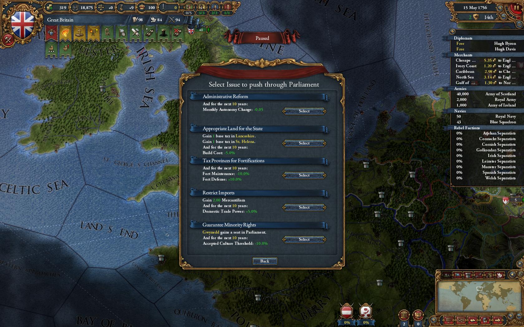 Paradox sta anche introducendo i parlamenti che permettono nuovi modi di governo costituzionale per mettere al potere dei rappresentati del popolo ed operare per conto della nazione.