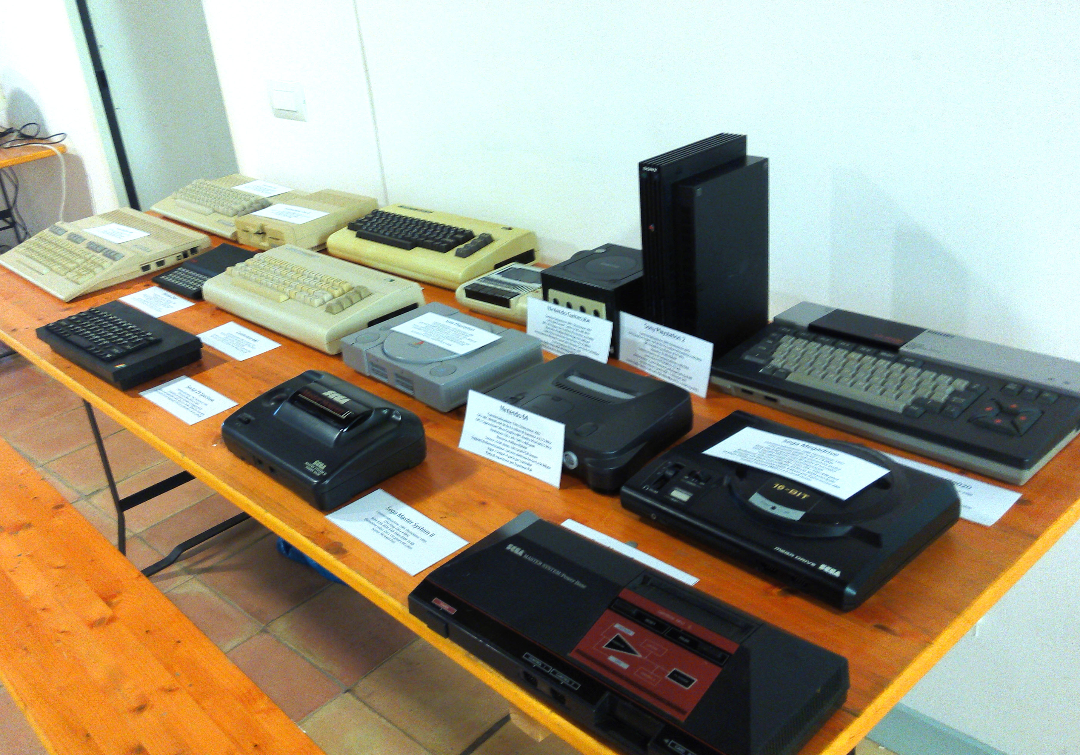 Per un week-end, “macchine” gloriose sono tornate protagoniste. Stiamo parlando di: Commodore 64, 64C e 64G, Commodore 128, Commodore VIC 20, MSX Philips Vg8020, Mattel Intellivision, Sinclair ZX Spectrum+, CBS ColecoVision, Sinclair ZX Spectrum, Sinclair ZX81, Sega Master System, Sega Master System II, Nintendo Entertainment System, Sega Megadrive, Sega Megadrive II, Nintendo Gamecube, Sega Dreamcast, Sony Playstation, Sony Playstation 2, Super Nintendo Entertainment System, Commodore Amiga CD32, Amiga 600, Microsoft XBOX e Nintendo 64.