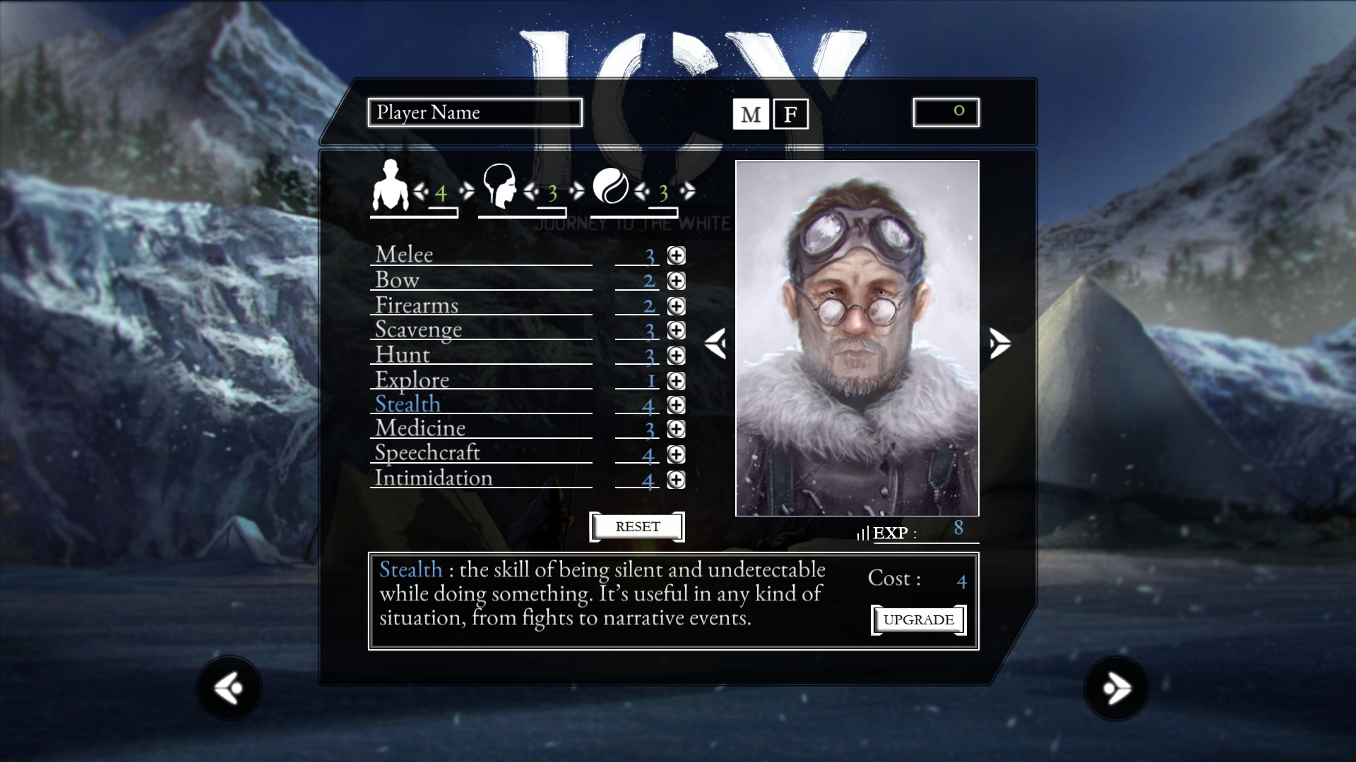 “Lo sviluppo di Icy è cominciato come un piccolo esperimento ispirato da NEO: Scavenger, con una reale gestione per la simulazione la propria sopravvivenza in un ambientazione ostile come già si conosce grazie a vari gdr dove il giocatore deve compiere la scelta migliore. Giochi dove i dialoghi non sono soltanto qualcosa da saltare per andare a sparare. I survival games sono discretamente popolari ma molti di loro hanno gestioni procedurali. Con Icy noi abbiamo voluto mettere una lunga e complessa meccanica per il genere. In Icy il giocatore è leader di una famiglia nomade che deve sopravvivere in base a molte risorse da collezionare. Ma questa è solo una parte della routine quotidiana della vita nomade. Bisognerà quindi prendere decisioni ed interagire con gli altri personaggi. Abbiamo lavorato sodo per realizzare un unica esperienza. Icy non è il clone di nessun gioco ma qualche cosa con una propria identità di cui noi andiamo veramente fieri”.