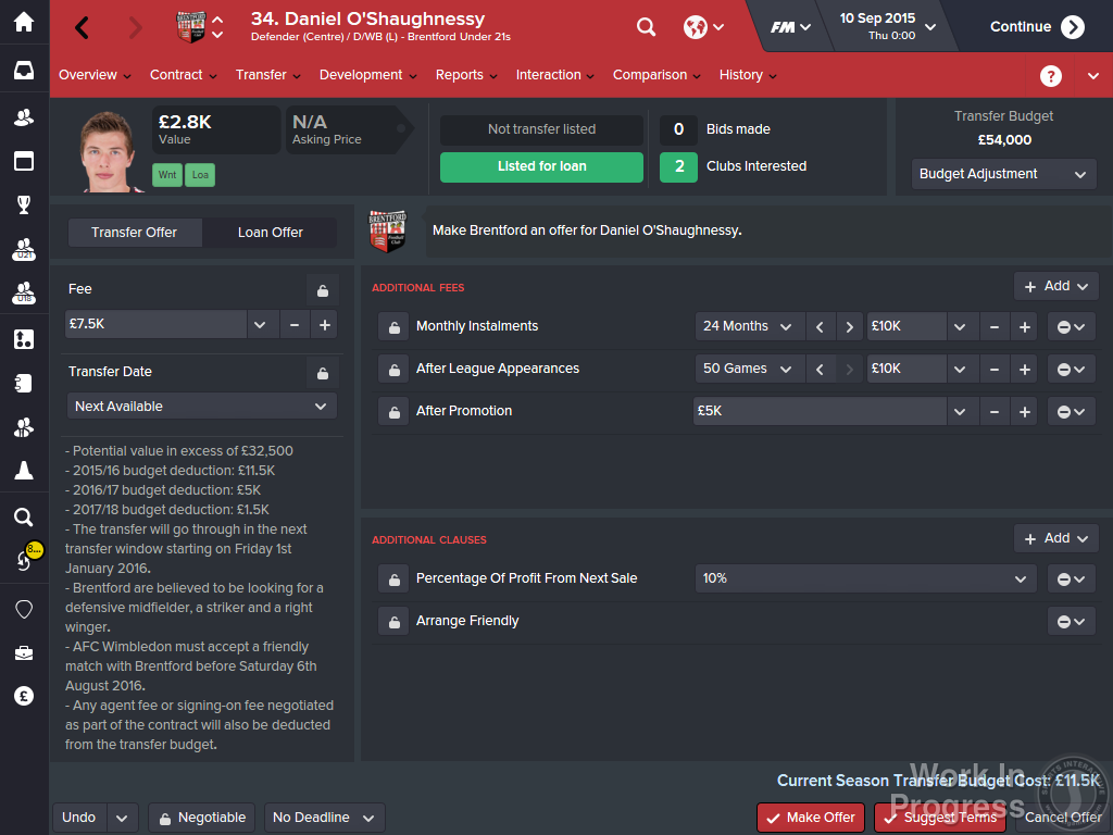 I manager che vogliono cominciare una nuova carriera con squadre essenzialmente immutate per l’intera durata del gioco possono abilitare l’opzione “nessun budget nella prima finestra di trasferimento”, consentendo solo trasferimenti a parametro zero.