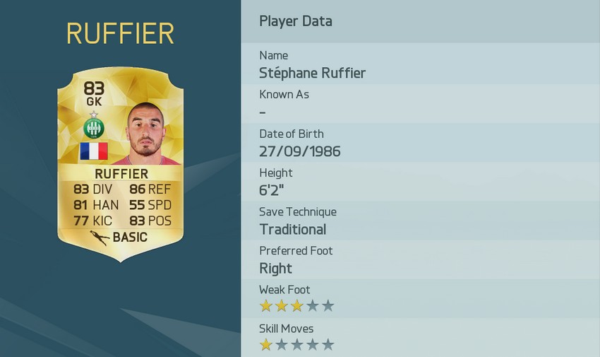 14 – Stéphane Ruffier – Saint-Étienne (Francia) – 83