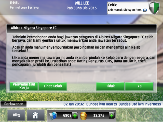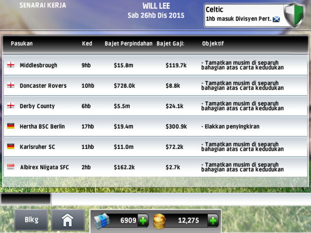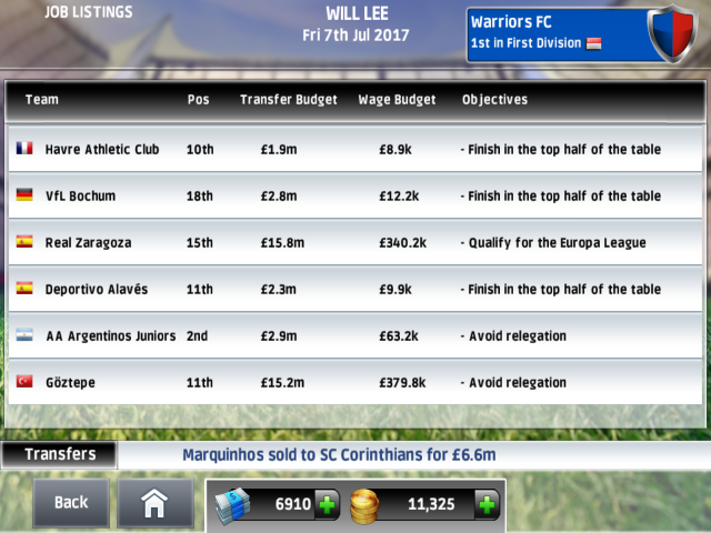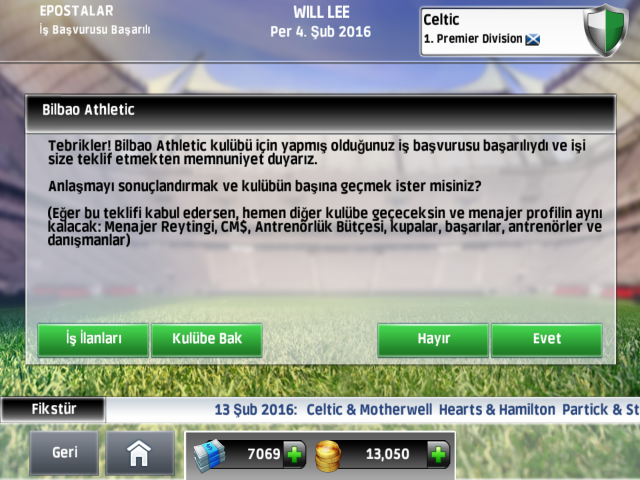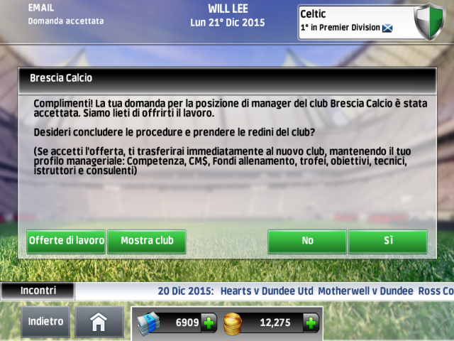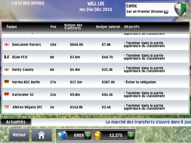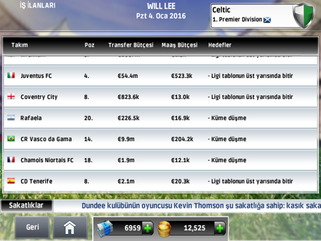 Offerte di lavoro – In base ai tuoi risultati, puoi ricevere offerte di lavoro da altre squadre. Dai un’occhiata e proponiti per i ruoli da allenatore disponibili