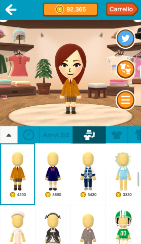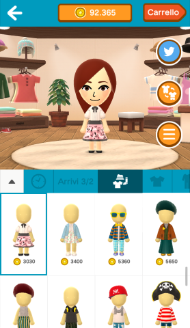I Mii viaggeranno visitando anche gli amici degli amici, perciò è importante apparire al meglio. Gli utenti possono creare il proprio stile unico con pantaloncini, calze, gonne, scarpe, accessori, cappelli e molto altro. E per esprimersi in modo ancora più eclatante, è possibile vestirsi con una varietà di costumi stravaganti, come per esempio il costume da orso, da pirata, da hot dog e tanti altri. Mentre gli utenti utilizzano Miitomo, guadagnano monete Miitomo, che possono essere riscattate nel negozio in-app per ottenere gli outfit più interessanti e disparati. Esiste anche la possibilità di ottenere monete Miitomo attraverso acquisti in-app.