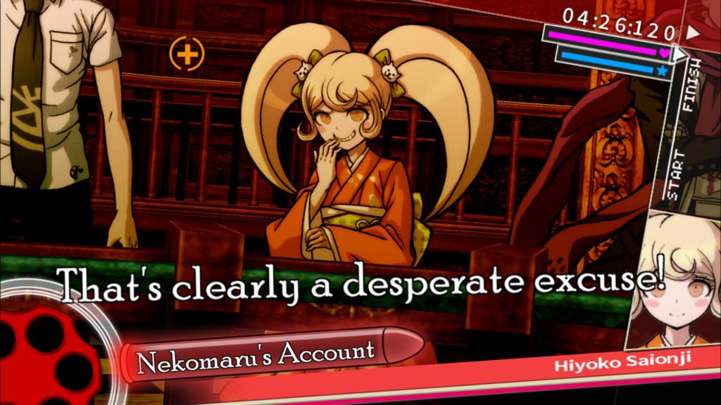 La difficoltà in generale, inoltre, ci è parsa meglio bilanciata, in quanto anche giocandolo a livello “normale” le opzioni degli indizi da cui scegliere di volta in volta non sono mai stati meno di quattro. Per chi non lo sapesse ancora, in Danganronpa gli indizi diventano proiettili da usare per distruggere le menzogne altrui in una coreografia di telecamera e testo davvero godibile.
