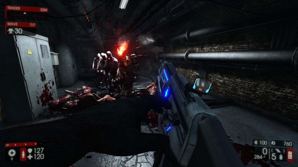 Giocare a Killing Floor significa dover affrontare un certo numero di ondate dei cloni assetati di sangue creati dalla multinazionale specializzata in biotecnologie Horzine in una mappa chiusa più o meno estesa. A seconda del numero di ondate e della difficoltà scelta, il gioco ci scatenerà incontro tutti i tipi di minacce in serbo per noi in un numero e ordine ben preciso anche in base al numero di giocatori presenti (quest’ultimo dato influenza anche la resistenza al danno dei nemici). Per ogni minaccia annientata o compagno di squadra curato (è possibile curare noi stessi o gli altri con un dispositivo apposito ), ciascun giocatore guadagna in tempo reale del denaro da poter impiegare nella tregua che avrà luogo puntualmente tra un’ondata e l’altra. All’interno delle mappe sono presenti anche delle porte che potremo saldare o dissaldare in modo da cercare di arginare il flusso delle minacce incombenti. Dopo l’ultima ondata vi sarà un’altra tregua, seguita dall’arrivo del temuto boss finale che sarà prontamente assistito da altri zed.