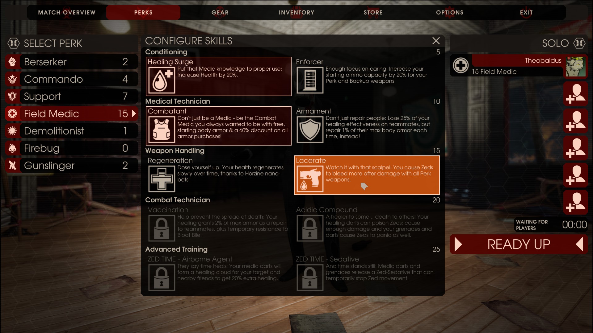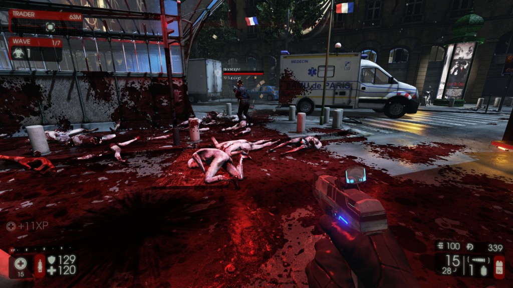 Per fortuna, tuttavia, è possibile lanciare dei “cinquantoni” (“Dosh! Grab it while it’s hot!”) verso i nostri compagni al fine di permettere loro di ricominciare in maniera dignitosa e all’altezza della situazione. In Killing Floor tuttavia l’eguaglianza non è di casa, in quanto dovremo anche scegliere una “classe” (in lingua originale perk, che significa “bonus”). Al momento ne sono presenti sette su dieci previsti nella versione corrente: Berserker (per chi ama il contatto fisico), Medic (le sue armi massacrano i nemici e curano anche i compagni con dei dardi), Firebug (per chi ama l’estate), Demolition (se non fa “boom” non è bello), Support (fucili a pompa che gioia), Gunslinger (per il pistolero a due mani che è in noi) e infine il Commando (fucili di assalto e visore notturno inclusi). Ciascuna di esse annovera dei vantaggi quali una percentuale di danno maggiore nell’utilizzo delle armi che le competono, oltre a una velocità di movimento diversa, un peso massimo trasportabile variabile e anche uno sconto direttamente proporzionale al livello del perk scelto (quest’ultimo elemento è assente in Killing Floor 2).
