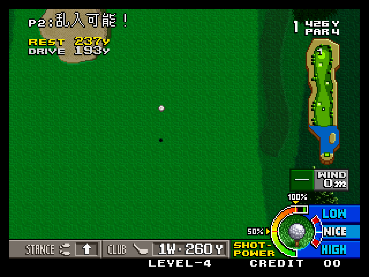 Il gioco Arcade premia i birdie e gli eagle regalando una buca supplementare da giocare mentre con i boogie si perde una buca e per proseguire bisogna inserire il gettone per continuare il percorso. Una partita alla versione Arcade all’epoca potava costare molto se consideriamo che ogni gettone dava diritto a giocare tre buche. Se si restava sul par si dovevano comunque spendere 6 gettoni per completare le 18 buche di uno dei quattro tornei selezionati. Questi gettoni diminuivano se le nostre evoluzioni portavano a concludere le buche sotto i colpi indicati ma aumentavano a dismisura se le prestazioni erano disastrose.