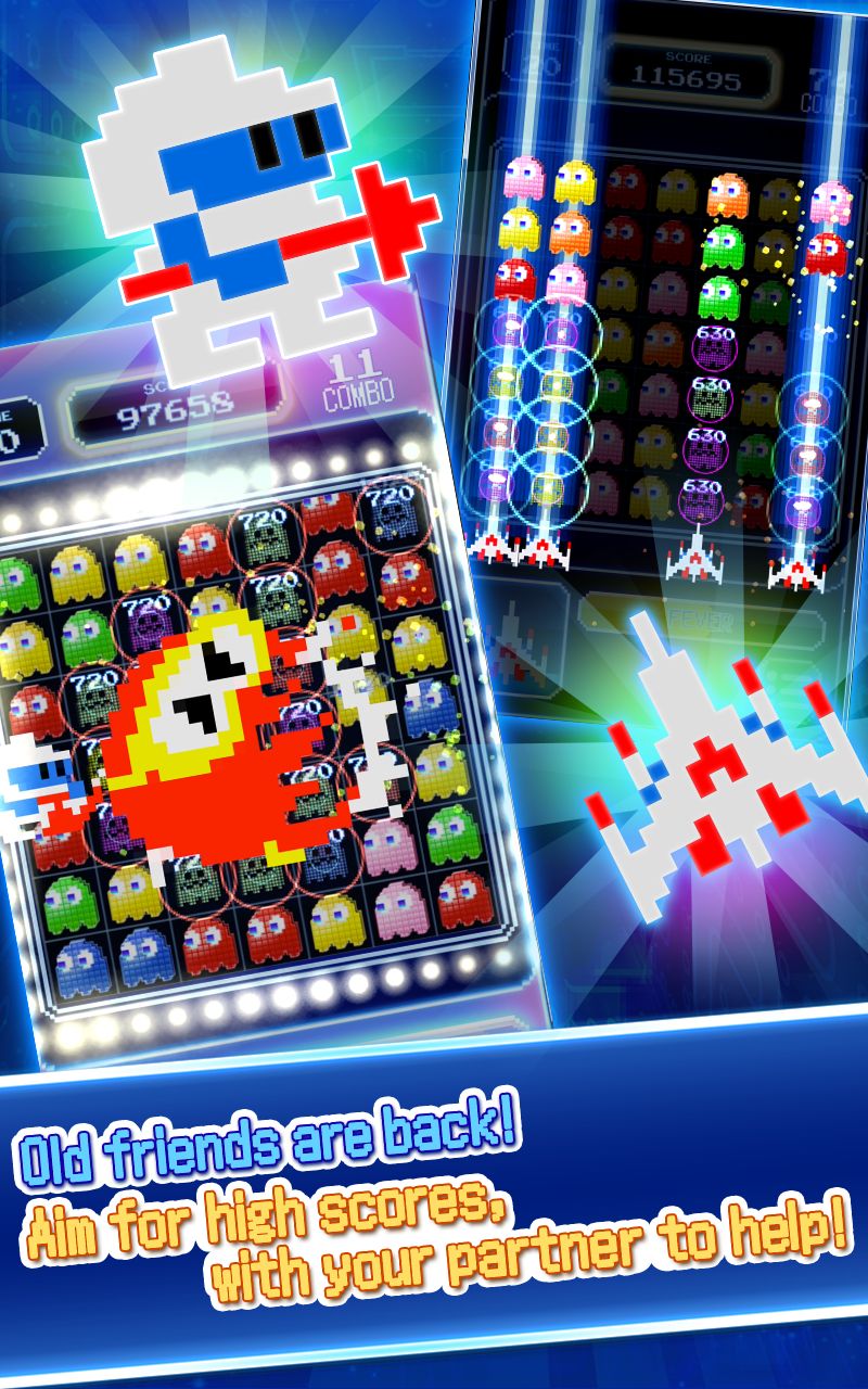 Prima dell’inizio di ogni livello Score Attack, si potrà scegliere il personaggio preferito tra i protagonisti di alcuni classici titoli arcade e una volta che l’indicatore dell’abilità sarà al massimo, ogni personaggio eseguirà una mossa speciale che lo aiuterà a liberare il tabellone. Avanzando nel gioco si otterranno altri personaggi, tra cui DIG-DUG e Galaga.
