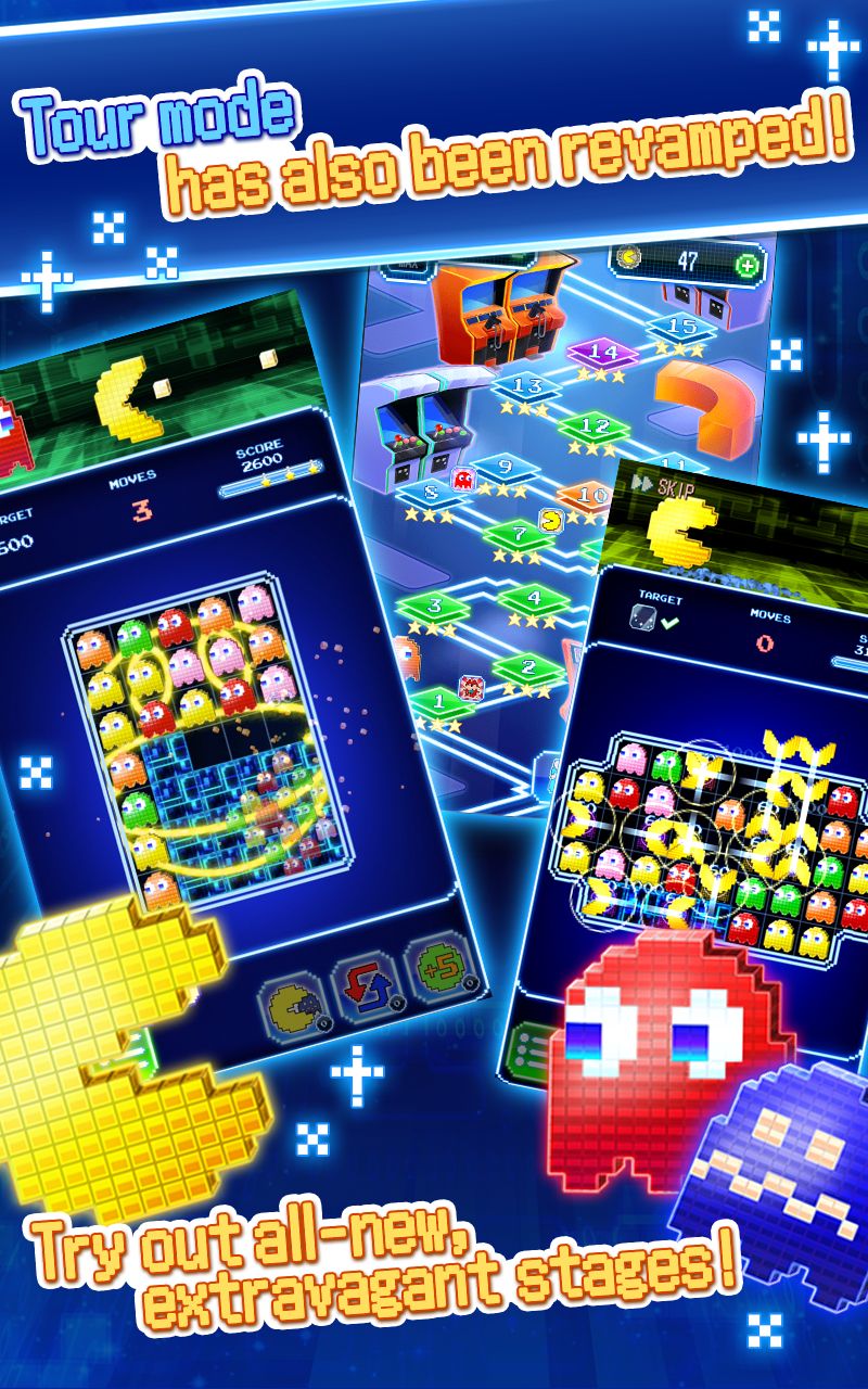 Bandai Namco ha aggiornato Pac-Man Puzzle Tour scaricabile gratuitamente da App Store e Google Play, rispettivamente per i dispositivi iOS e Android.