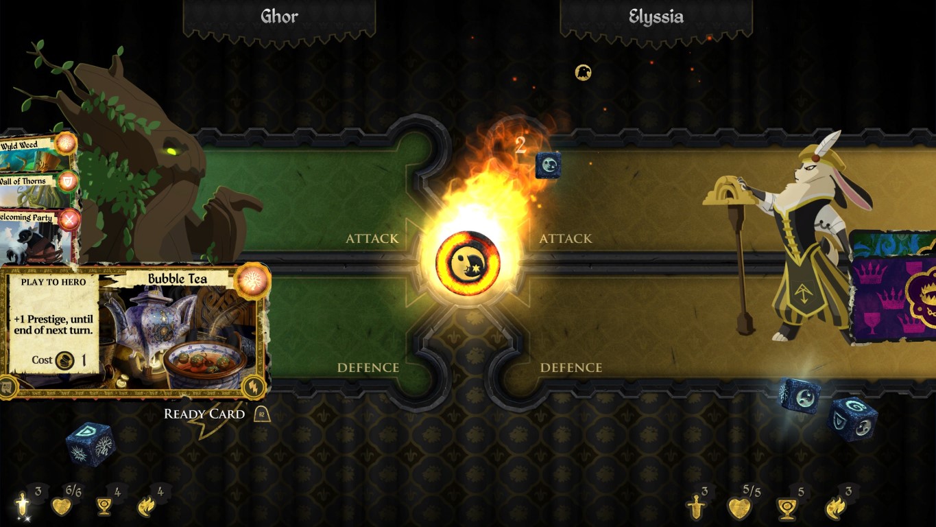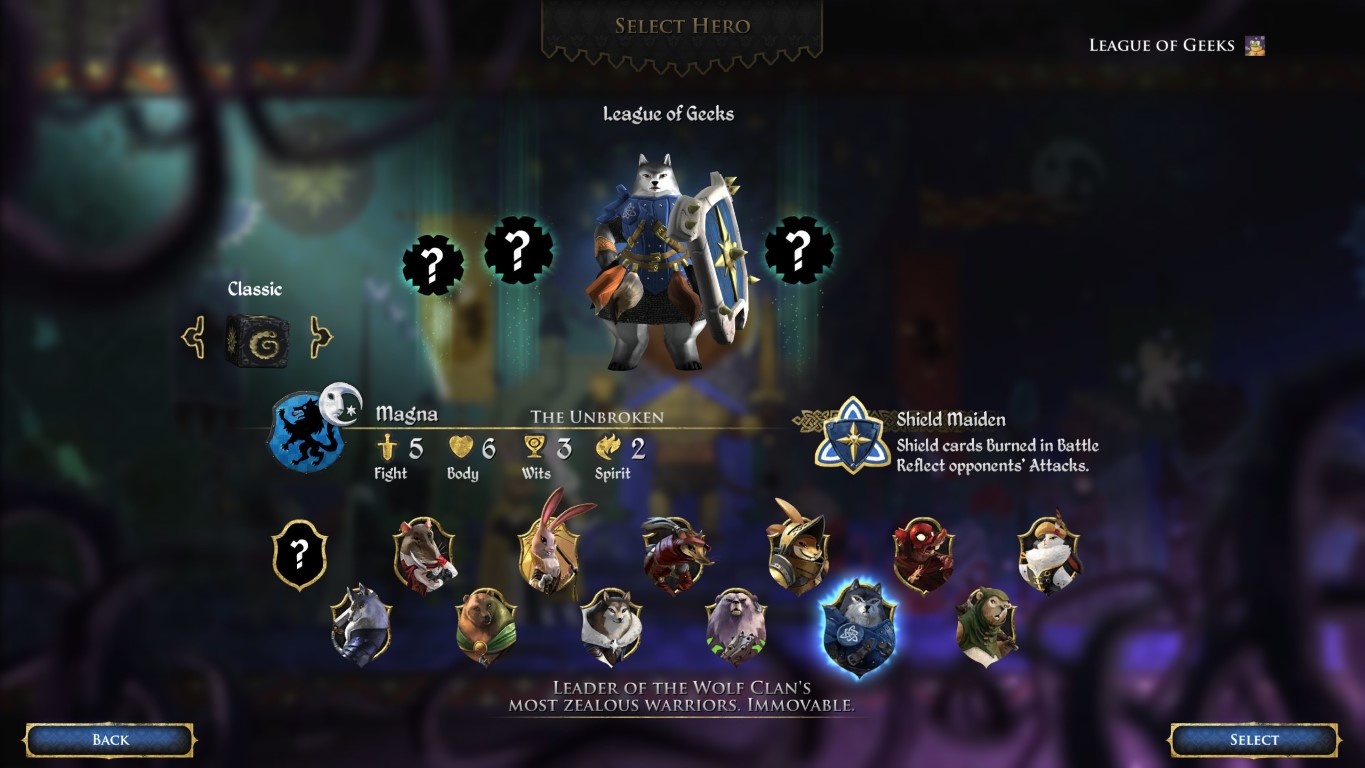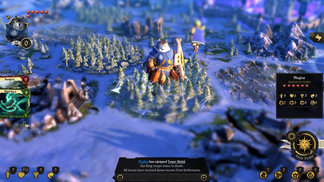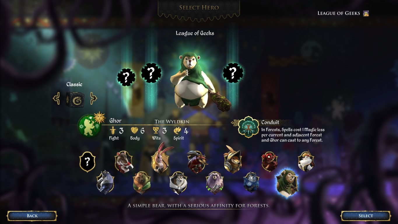 Ghor, il Wyldkin: un eroe del Clan dell’Orso la magia del quale trae potere dalle foreste. Il suo potere eroico è “Incanalare” che gli permette di lanciare incantesimi con uno sconto di energia magica pari a quanti boschi ha vicino, e gli permette di evocare una qualsiasi tessera boschiva sul tabellone. Questa potente capacità è ideale per giocare incantesimi in segretezza.