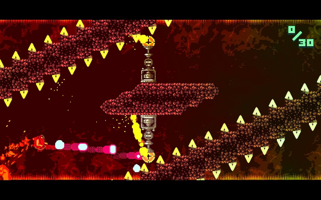 Ovviamente il titolo funziona anche con la tastiera oltre che con il joypad. I comandi sono reattivi ma bisognerà avere la mano dolce per dosare la forza anche perché i numerosi livelli avranno la loro unica via di uscita. I primi sono abbastanza larghi, ma più avanti si andrà più l’azione sarà frenetica e gli ostacoli infidi al punto che ogni singolo errore, purtroppo anche quello impercettibile, potrebbe costare caro. Quando si muore, l’azione torna indietro al punto precedente (se il livello è suddiviso i vari punti contrassegnati da bandiere) o dall’inizio dello stage.