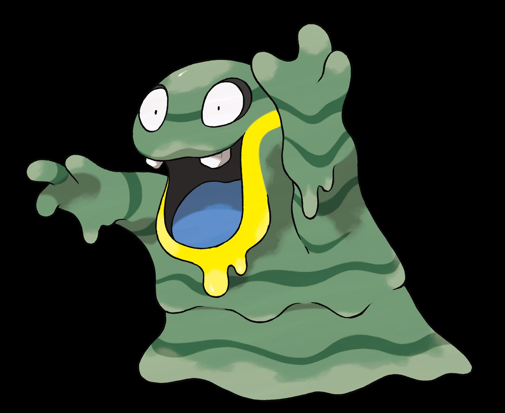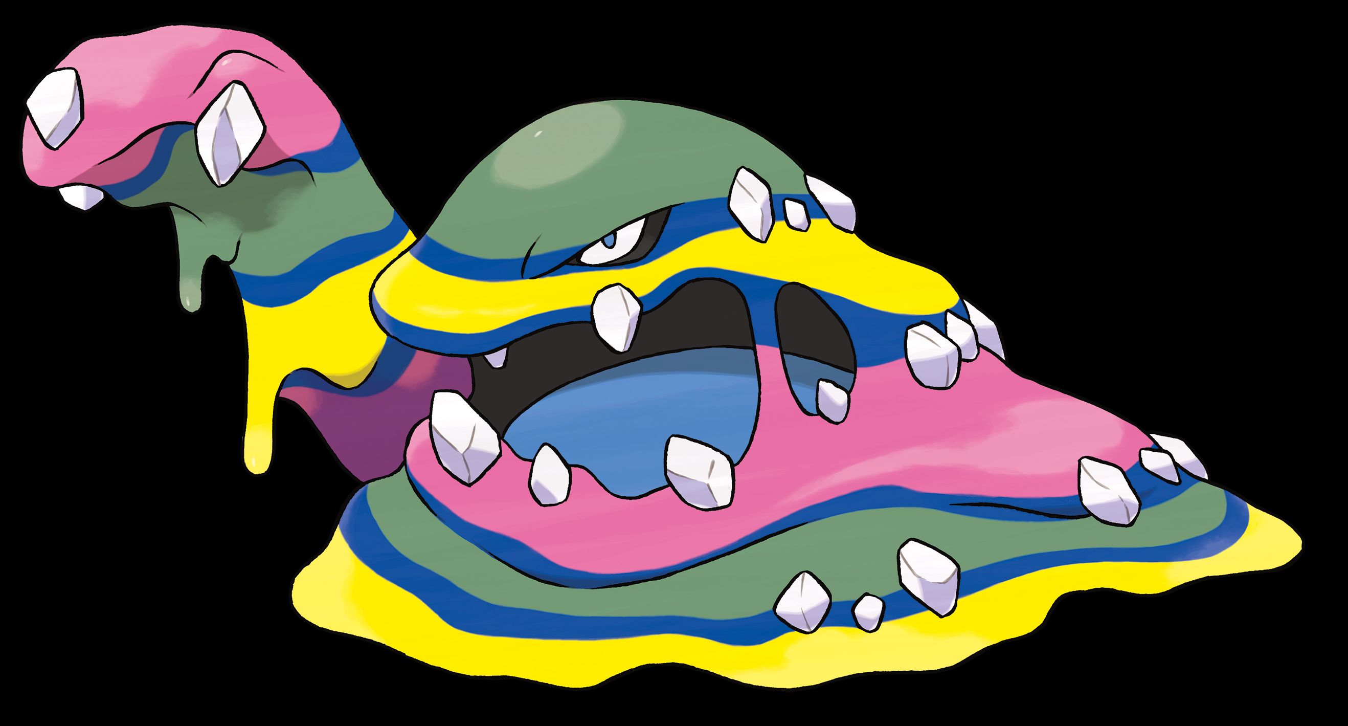 L’aumento della popolazione di Alola comportò in passato un serio problema di gestione dei rifiuti, per risolvere il quale vennero importati dei Grimer da altre regioni. Questo Pokémon si nutre principalmente di spazzatura, perciò, cambiando il suo cibo, anche la sua stessa composizione e il suo aspetto subirono delle mutazioni. Quelli che sembrano denti nella sua bocca in realtà sono tossine derivate dall’immondizia che mangia, indurite e cristallizzate. Il centro smaltimento rifiuti di Alola ospita più di cento esemplari di questo Pokémon.