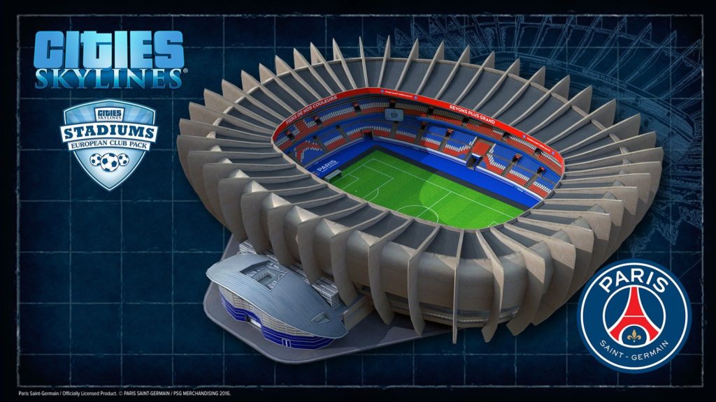 Arrivano i grandi stadi di calcio in Cities: Skylines. L’eccellente city builder di Colossal Order e Paradox Interactive si arricchisce con Stadiums – European Club Pack. Costa 5,99 euro ed include gli stadi reali di Barcellona, Chelsea, Juventus Football Club e Paris Saint-Germain con i rispettivi colori e loghi.