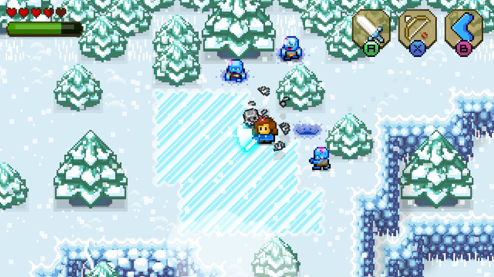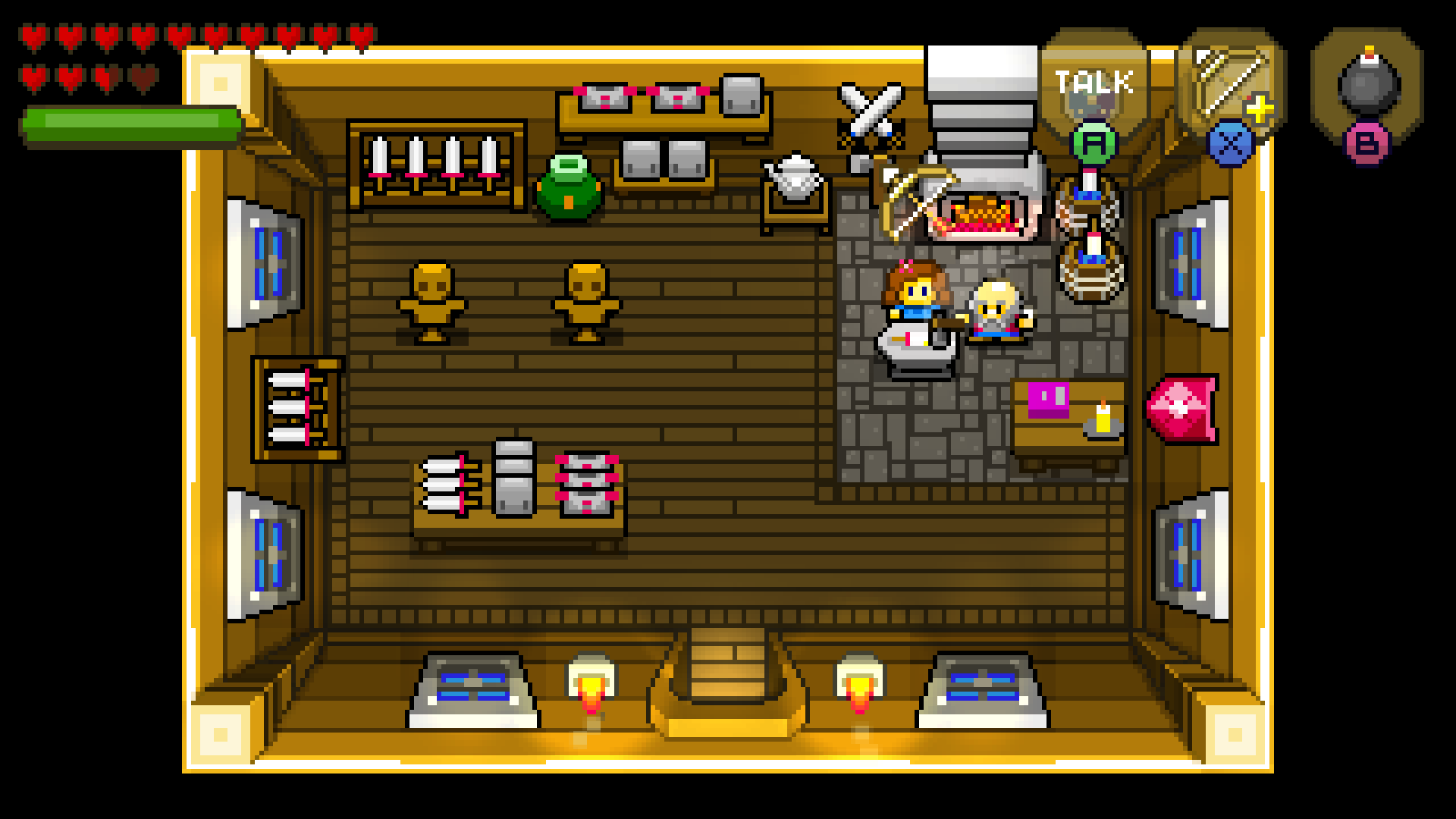 Si tratta di un gioco d’azione ed avventura in stile pixel art con visuale dall’alto che mostra tutte le sue influenze retro offrendo uno stile ironico e introducendo anche alcuni elementi moderni, in particolare a livello grafico, musicale e di gameplay.
