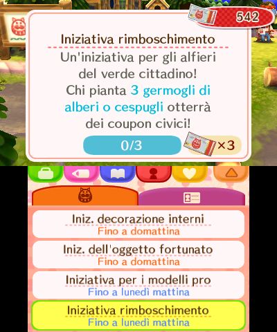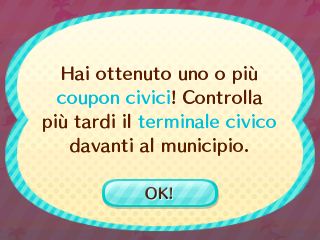 - Coupon civico: guadagnando i nuovi Coupon civici (scambio reciproco di ricchezza) i giocatori possono ottenere alcuni oggetti esclusivi all’interno del gioco nell’area dei camper o visitando gli amici animali. Per guadagnare questi coupon, i giocatori devono completare le nuove iniziative cittadine, come estirpare una certa quantità di erbacce o raccogliere alcune conchiglie.