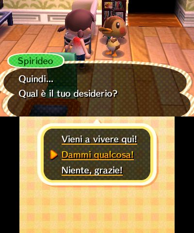 - I Desideri di Spirideo: trovando la lampada magica nel gioco principale, i giocatori potranno sbloccare la funzionalità amiibo. Una volta acquisita, la lampada può essere utilizzata una volta al giorno per richiamare lo spettrale Spirideo. Basta toccare un amiibo e invitare il rispettivo personaggio amiibo nella vostra città, o quotidianamente ricevere un oggetto. Vuoi vivere in una città piena di anatre? O mucche? Utilizzando lo specifico amiibo, quel desiderio può diventare realtà!