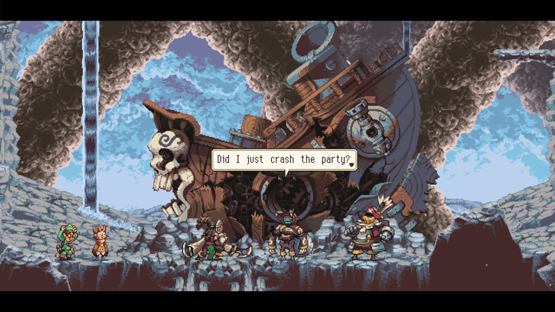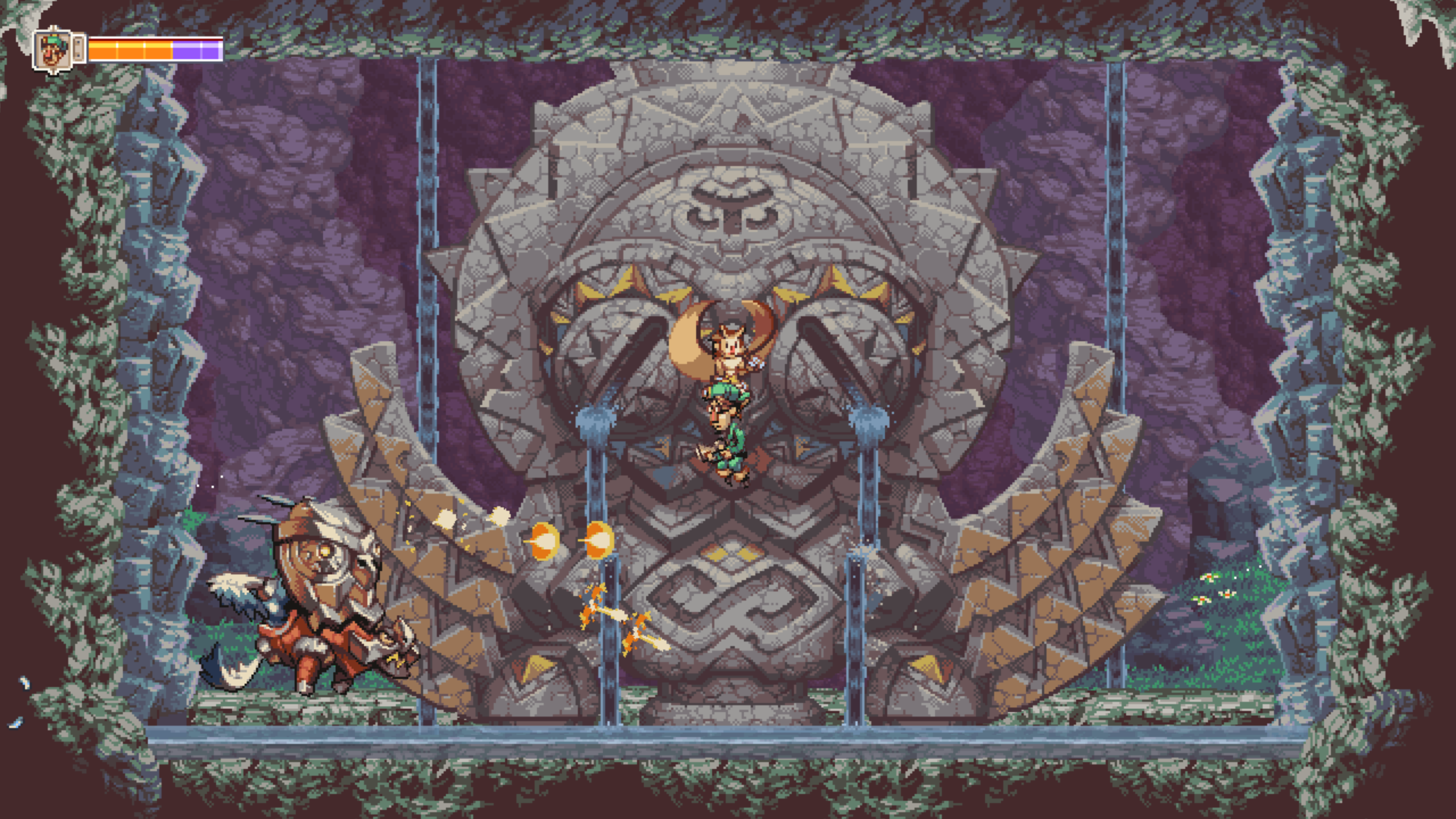 A proposito di soprese: Owlboy ha un intreccio con qualche svolta gradevole ma che rimane, nel complesso, abbastanza lineare. Durante il nostro peregrinare in compagnia dei nostri alleati affronteremo tipi di nemici diversi (di numero tuttavia limitato sia per numero su schermo che tipologia in generale) e ambientazioni variegate. Puntualmente, dovremo affrontare dei boss in battaglie dalla risoluzione abbastanza semplice e mai davvero impegnativa, ma sempre belle a vedersi e con ottime animazioni.