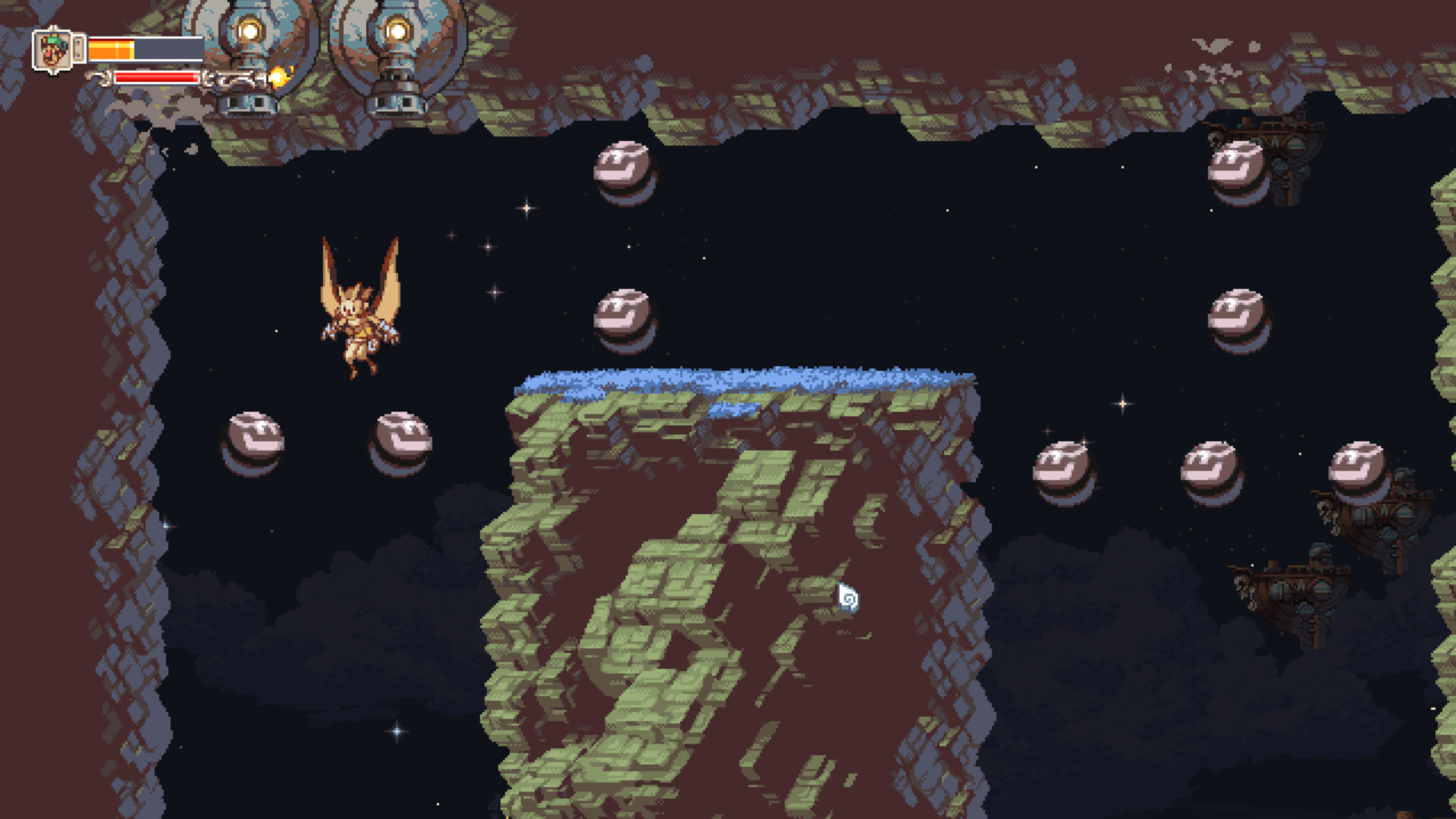Quelle che ci sentiamo di definire come principali sono due: la possibilità di volare e di trasportare sia oggetti che personaggi. Per quanto riguarda il primo punto, il protagonista Otus potrà librarsi in volo e quindi percorrere liberamente lo spazio intorno a sé senza limiti semplicemente premendo “su” due volte di fila (premendolo una volta, invece, effettueremo un semplice salto).