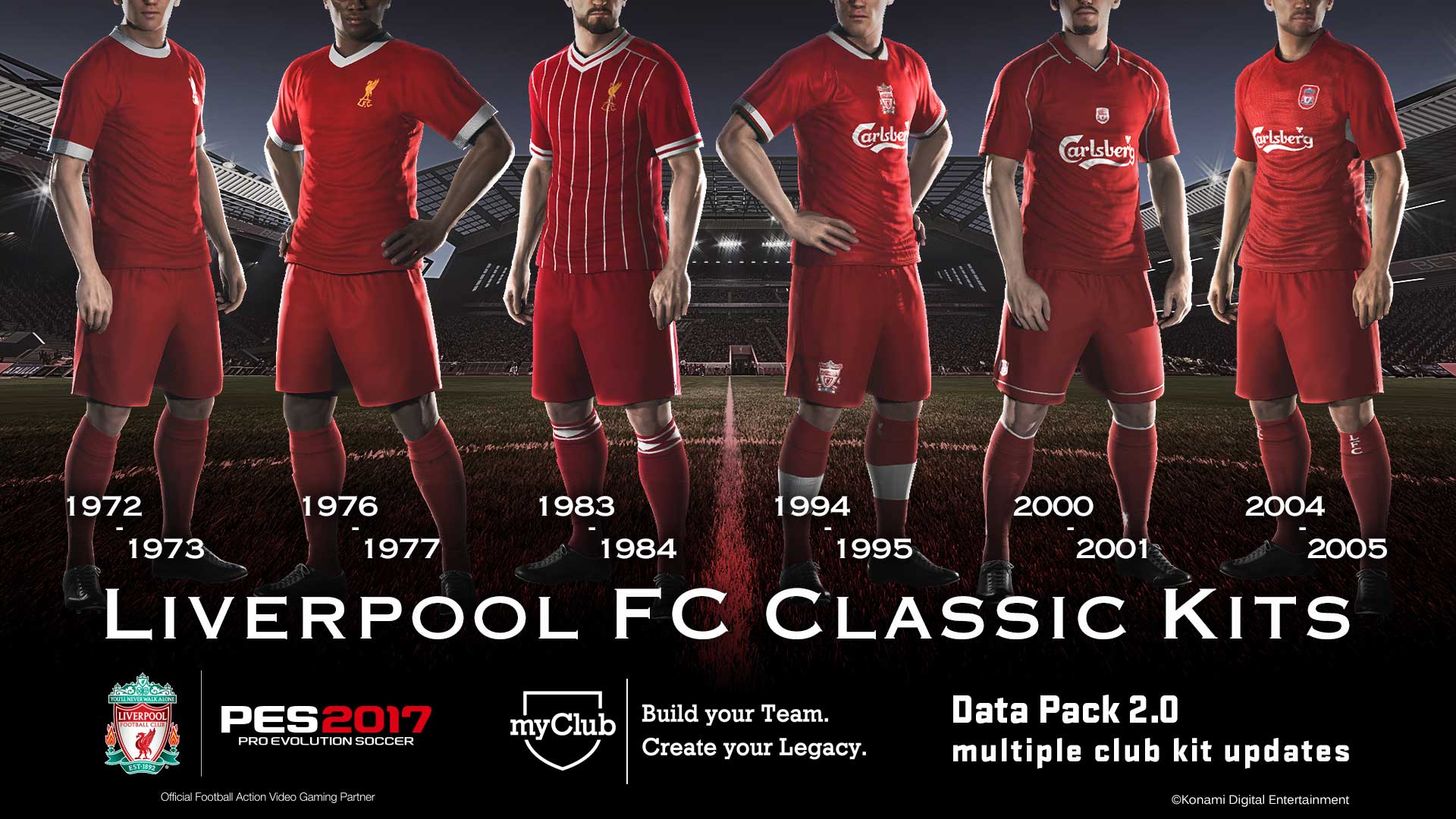 Il punto centrale di questo nuovo aggiornamento sono le 16 nuove divise, più un’iconica divisa classica della stagione 2004—2005, del Liverpool, così come lo stadio Anfield, ricreato fedelmente con la nuova tribuna principale, presente solo in PES 2017. Esso viene accompagnato da una riproduzione perfetta del Signal Iduna Park del Borussia Dortmund e dell’ Allianz Parque, la casa dei “giganti brasiliani” del Palmeiras. Sia lo stadio Anfield del Liverpool che il Signal Iduna Park del Borussia Dortmund saranno caratterizzati dalla presenza dei corrispettivi inni: “You’ll Never Walk Alone” e “Heja BVB”, con tanto di fan che esultano durante l’entrata in campo dei giocatori e durante la partita.