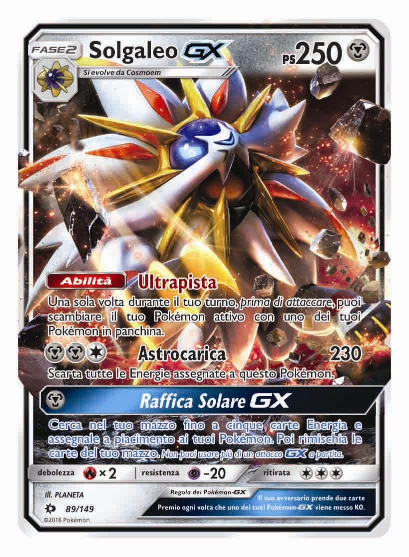 Questi Pokémon leggendari ti introdurranno a un nuovo e incredibile potere, quello dei Pokémon-GX, ognuno dei quali dispone di un attacco così devastante da poter essere usato solo una volta in ogni partita. Scopri tanti Pokémon mai visti prima, le forme di Alola di alcuni dei tuoi Pokémon preferiti di sempre e dei modi di lottare inediti nell’espansione.