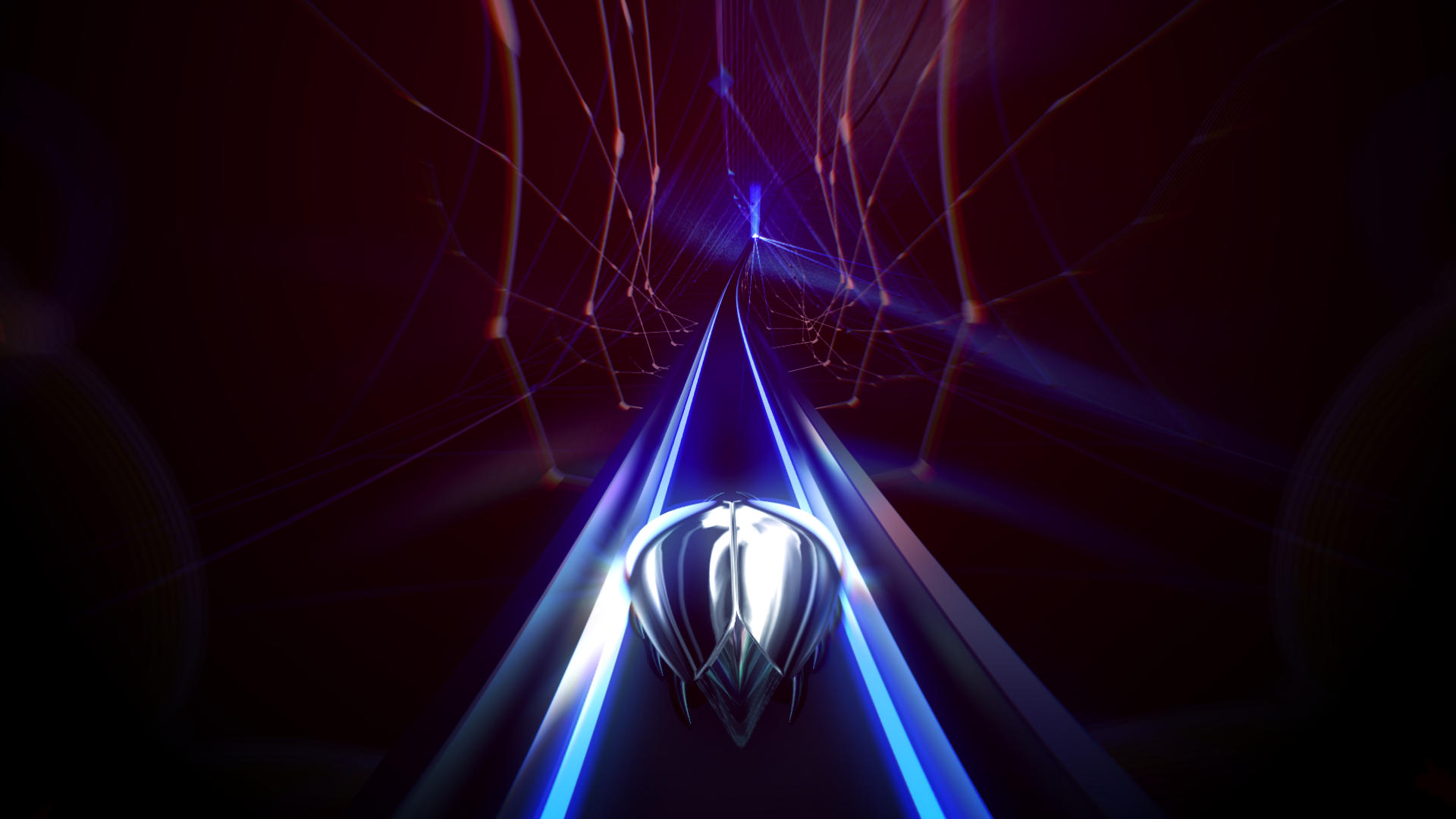 Thumper aggiunge puntualmente una variabile fra quelle di nostra conoscenza, costringendoci ad adattarci. Dapprima sarà la meccanica base dell’interazione coi punti luminosi distribuiti sulla pista da noi percorsa, a cui seguiranno le curve brusche (non basta solo curvare, ma dovremo anche metterci in posizione di difesa), le brevi planate e via discorrendo. La fine di ogni sezione di un dato livello è chiaramente annunciata dall’attraversamento di un grosso anello, occasione in cui visualizzeremo il punteggio ottenuto e la votazione e, soprattutto, in cui potremo riacquistare la nostra corazza protettiva premendo il tasto “azione” nel momento esatto in cui varcheremo la soglia del checkpoint. Non possiamo esimerci dal precisare come lo spazio e le forme in Thumper siano puntualmente distorte dalla velocità smodata a cui staremo sfrecciando, rendendo l’affidamento nei confronti delle distanze precario. Ascoltare è sempre meglio, come è giusto che sia.