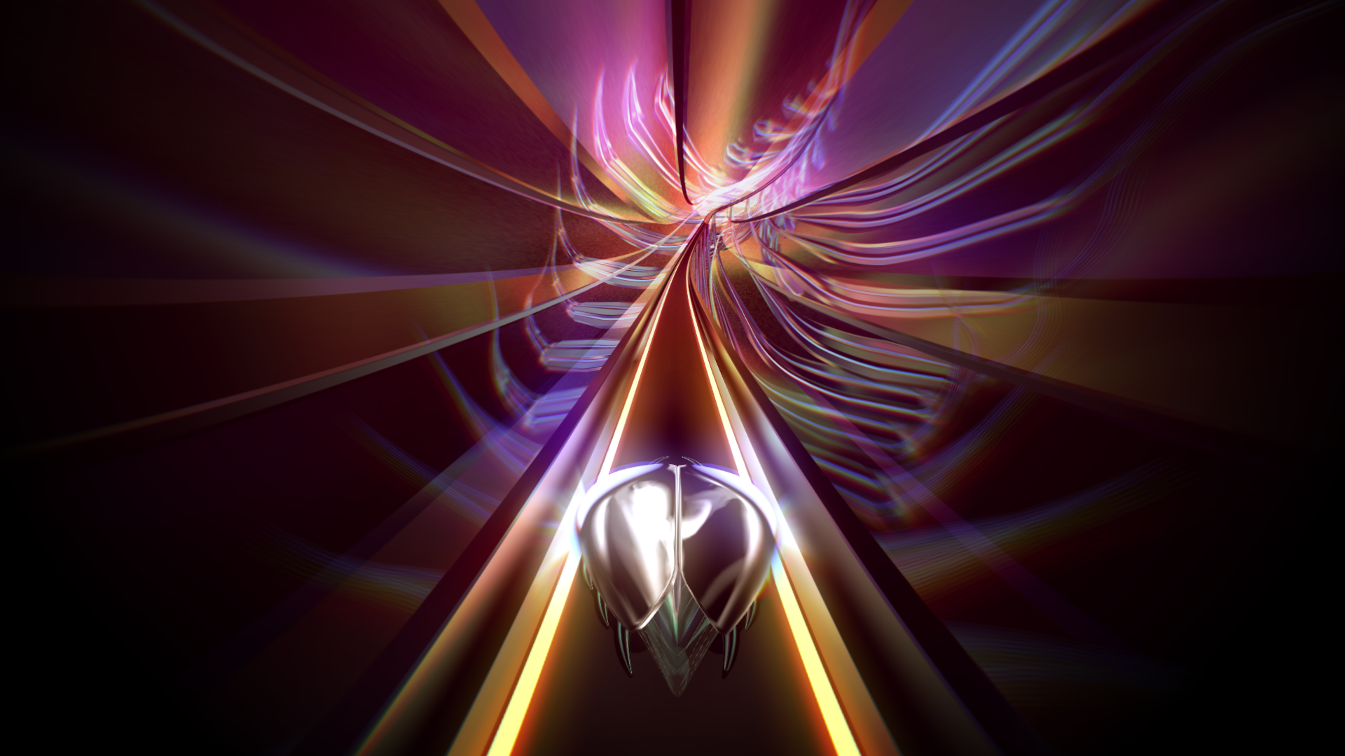 Ma dove andiamo così di fretta? Non si sa. Ma ciò che si profila innanzi a noi ribolle di colori e moti incredibili, un palcoscenico su cui talvolta si profileranno concerti geometrici di forme frattali colorate più o meno morbide o appuntite, più o meno fredde o calde. Ma non c’è tempo per ammirare l’orizzonte, bisogna stare attenti. Chi ha concepito il nostro avatar, infatti, è apparentemente un appassionato della serie Konami in cui spunta un Re Artù protetto dalla sua armatura, pronto a perderla con un colpo e a perire con il secondo a patto di non riuscire a ottenerne un’altra. È proprio così che funziona Thumper.