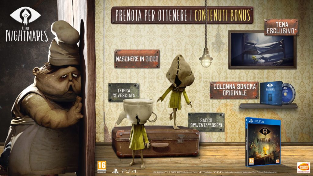Con la prenotazione tutti i giocatori riceveranno due maschere: il sacco per spaventapasseri e la teiera capovolta per aiutare Six a confondersi tra gli altri abitanti de Le Fauci. Inoltre, i possessori di PS4 e Pc riceveranno la colonna sonora originale in formato digitale, un tema esclusivo per PS4 o uno sfondo per Pc raffigurante The Janitor.