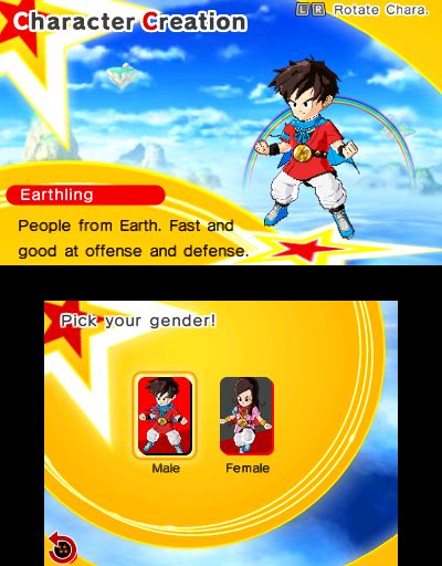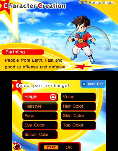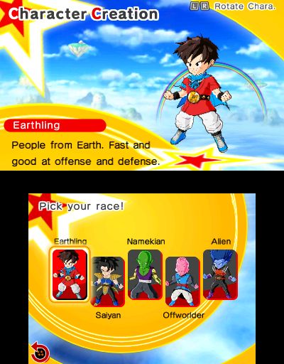 Il titolo introduce due nuovi personaggi: Pinich, il vostro migliore amico e rivale, e il personaggio che avrete creato. Dalla razza (tra cui terrestre, saiyan, alieno, oltraneo, namecciano) al colore degli occhi, dal taglio di capelli alla voce e tanto altro, sta a te creare il nuovo guerriero di Dragon Ball. Una volta che hai deciso, ti troverai a esplorare diversi mondi costituiti da diverse location dell’universo di Dragon Ball.